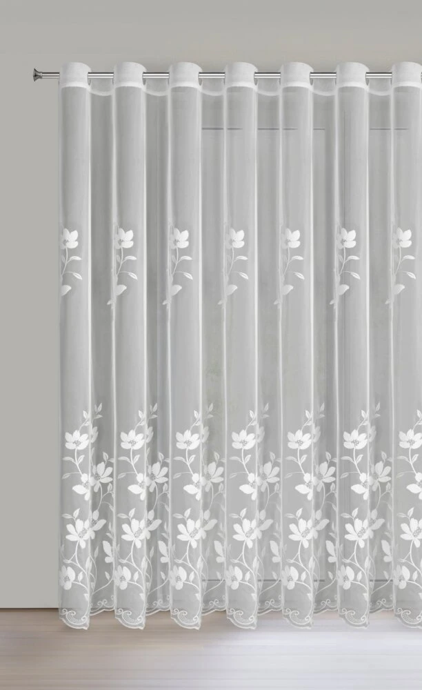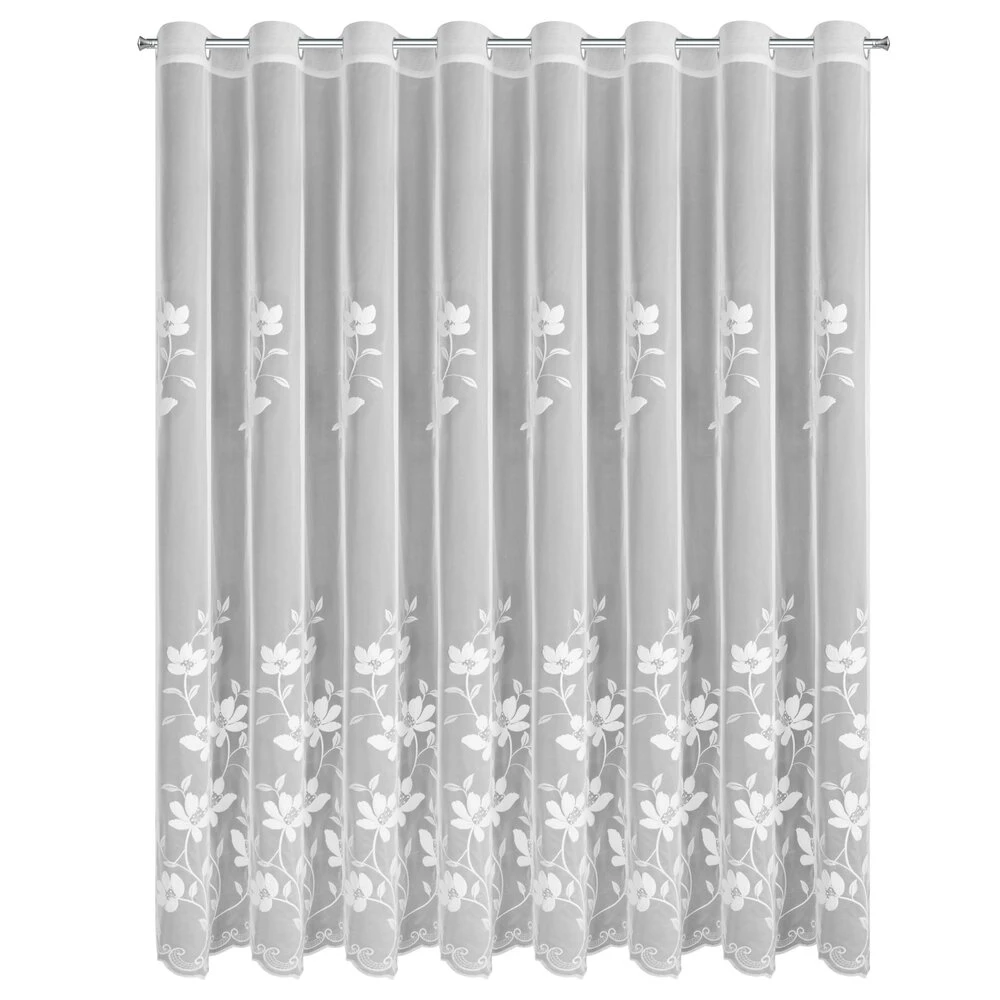 Firana gotowa zdobiona haftem szerokość: 350 cm, długość: 250 cm, kolor: biały, Skład: 100% poliester