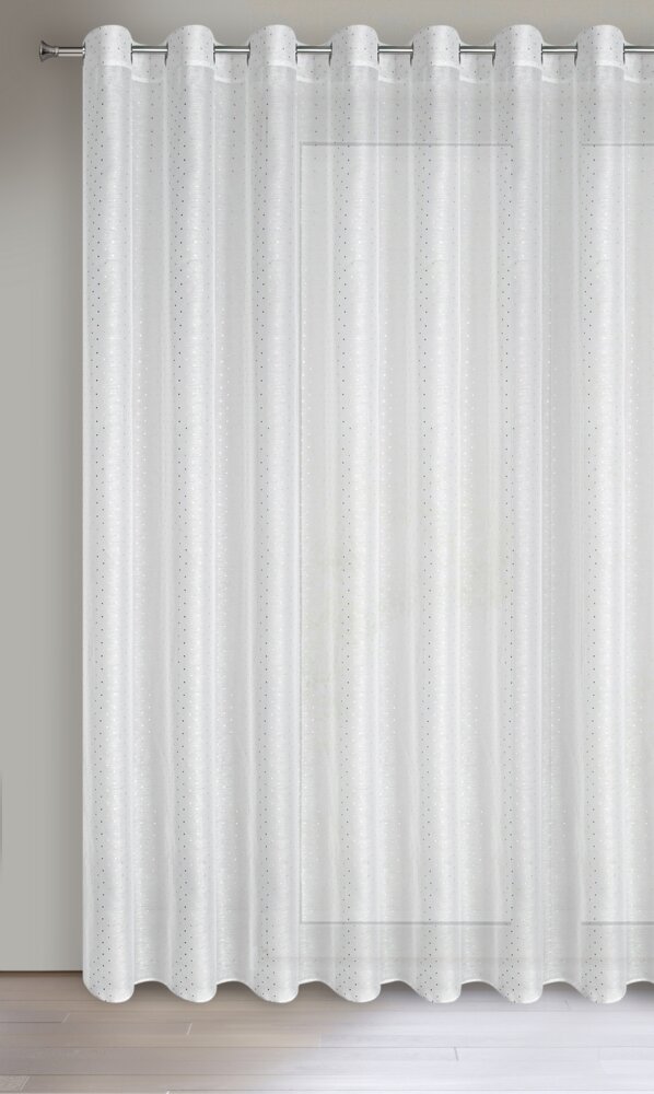 Firana gotowa ze srebrnym nadrukiem szerokość: 300 cm, długość: 250 cm, kolor: biały, Gramatura: 50 GSM, Skład: 100% poliester