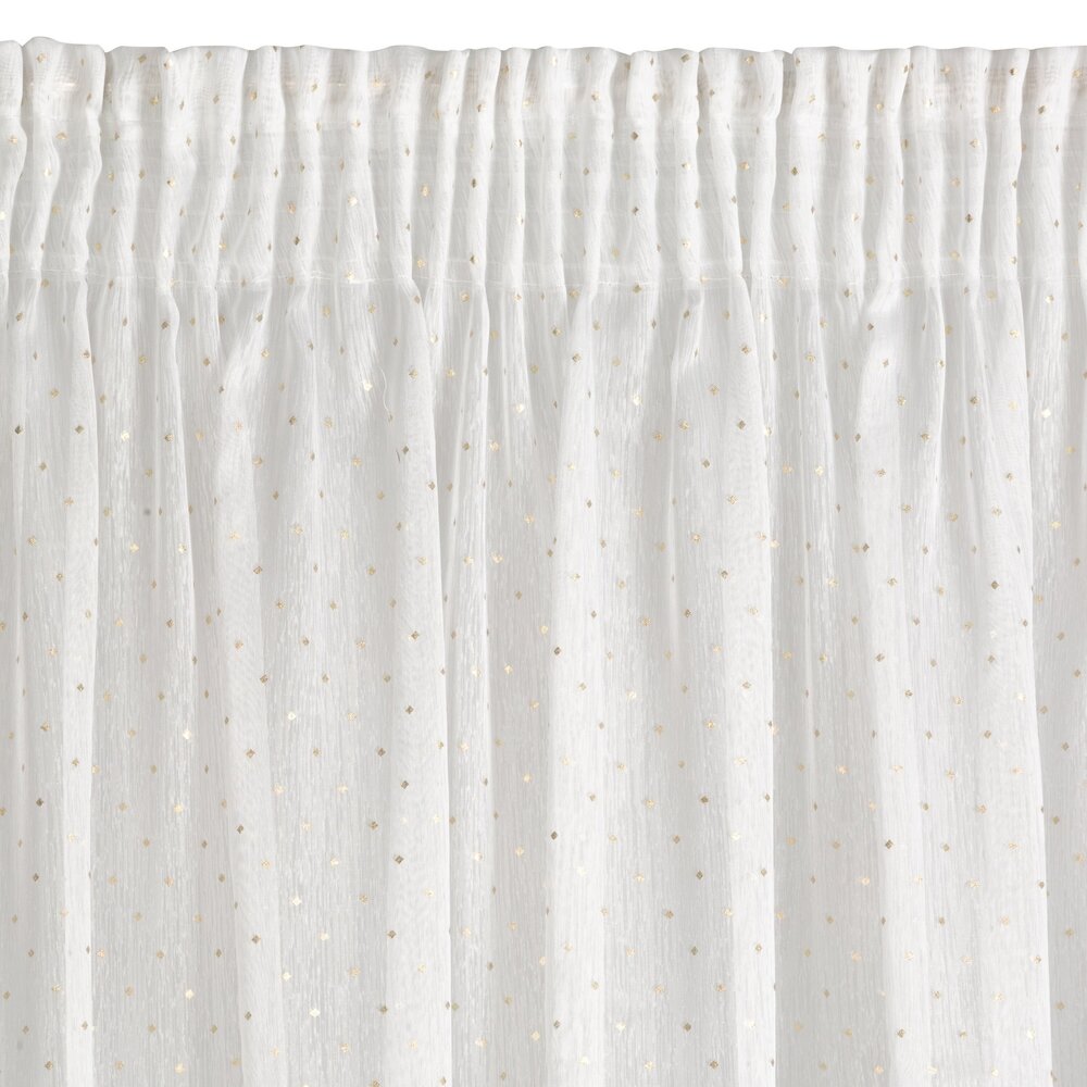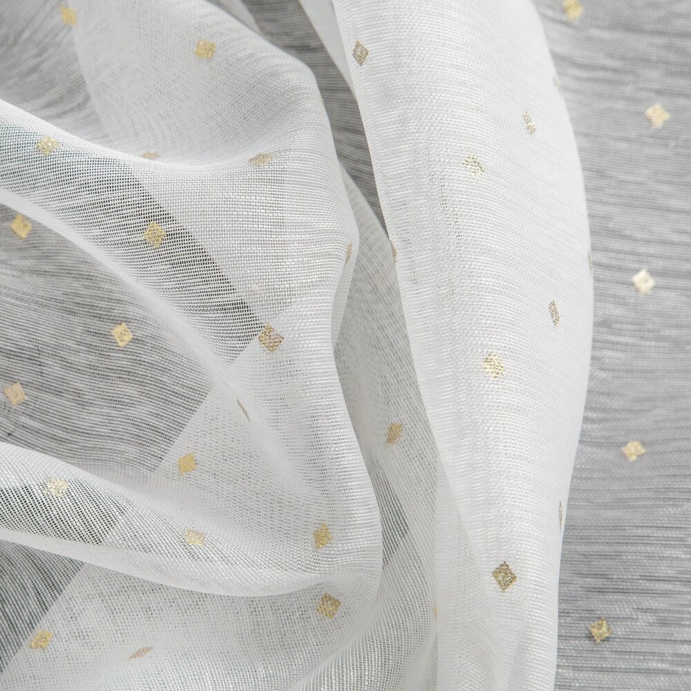 Miękka firana z nieprzejrzystej tkaniny dekorowanej drobnym nadrukiem rombów. Doskonale rozprasza światło. Wymaga prasowania po lewej stronie. szerokość: 300 cm, długość: 250 cm, kolor: biały, Gramatura: 50 GSM, Skład: 100% poliester