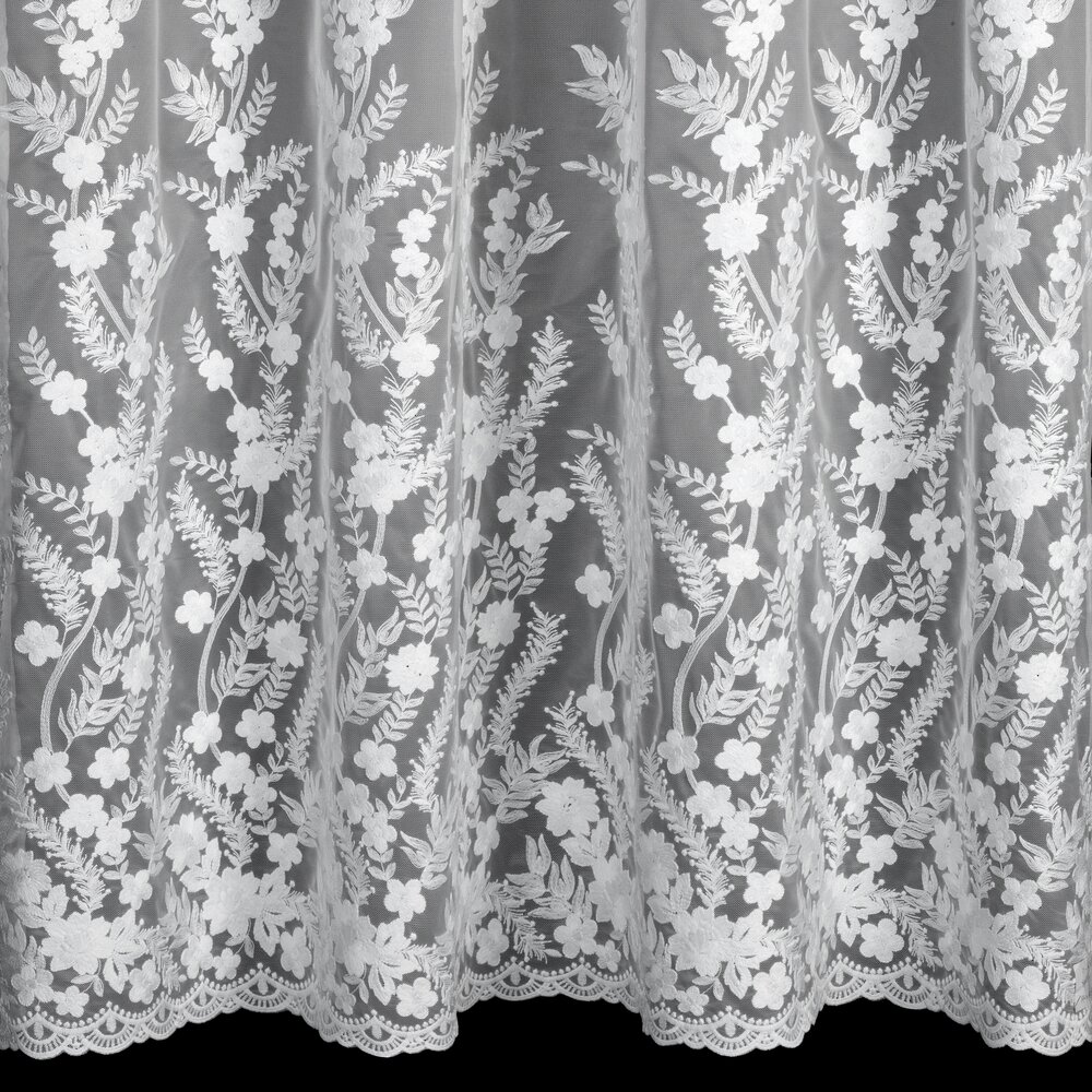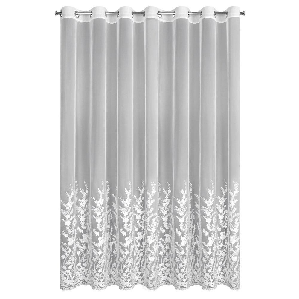 Firana gotowa zdobiona haftem szerokość: 300 cm, długość: 250 cm, kolor: biały, Gramatura: 60 GSM, Skład: 100% poliester