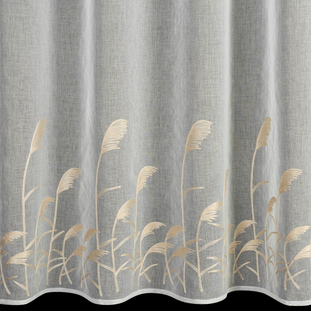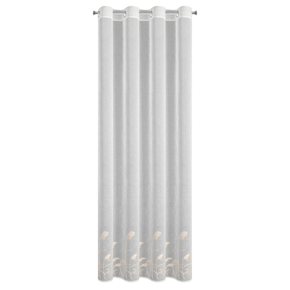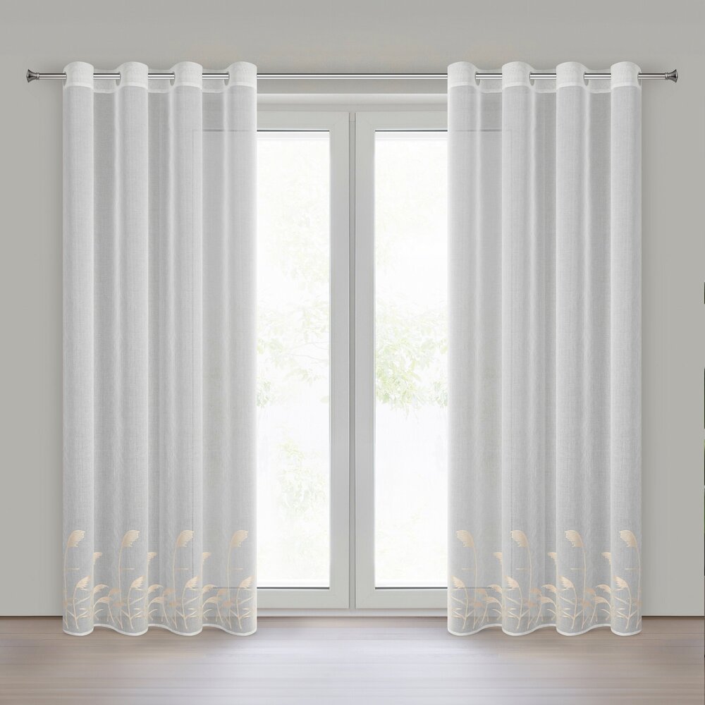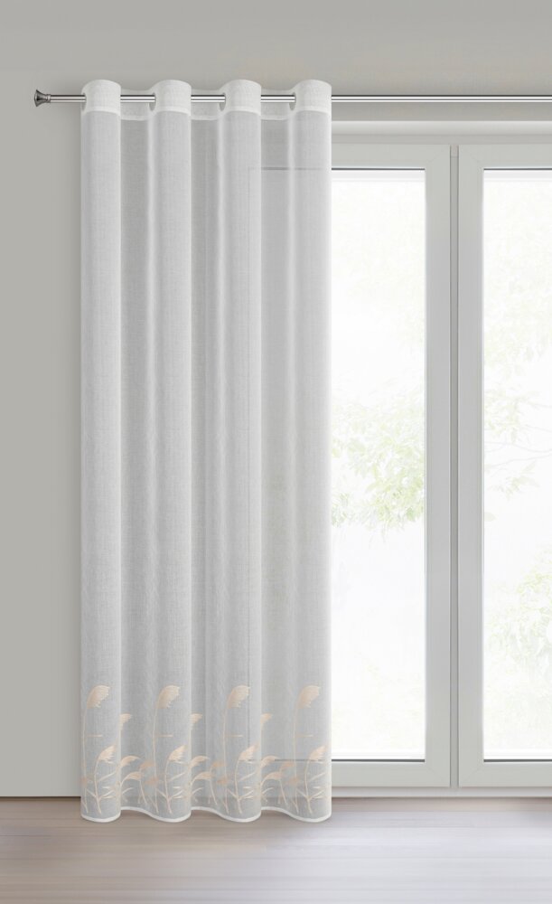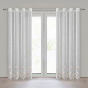 Firana gotowa zdobiona haftem szerokość: 140 cm, długość: 250 cm, kolor: biały, Gramatura: 72 GSM, Skład: 100% poliester