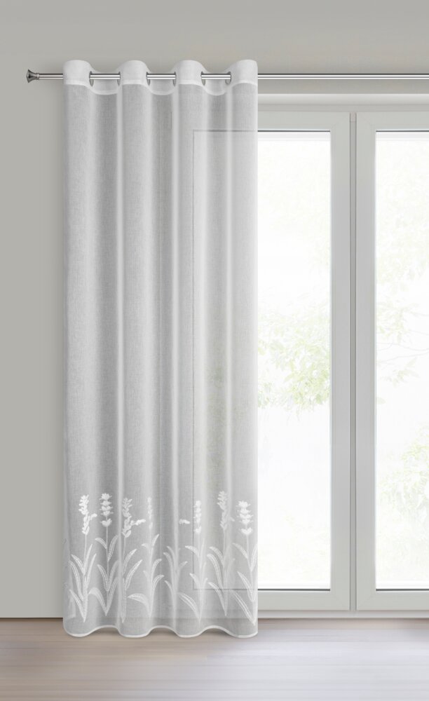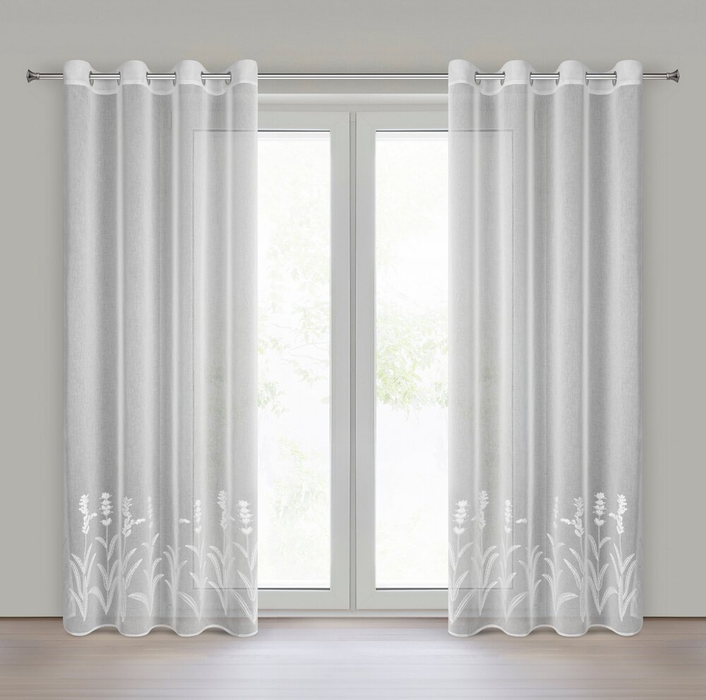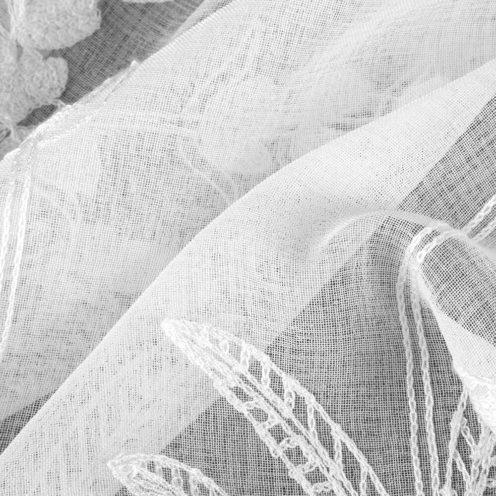 Firana gotowa zdobiona haftem szerokość: 140 cm, długość: 250 cm, kolor: biały, Gramatura: 80 GSM, Skład: 100% poliester