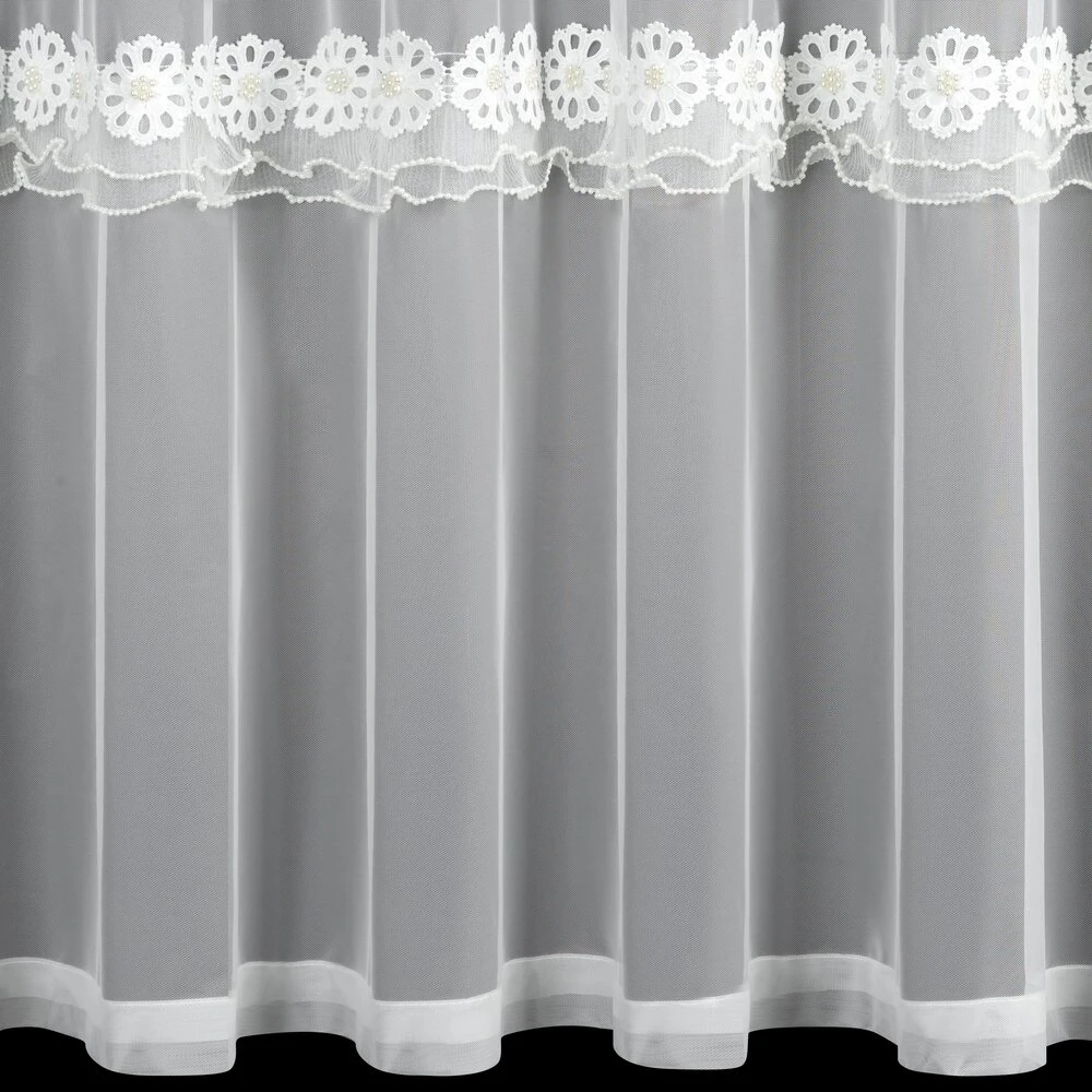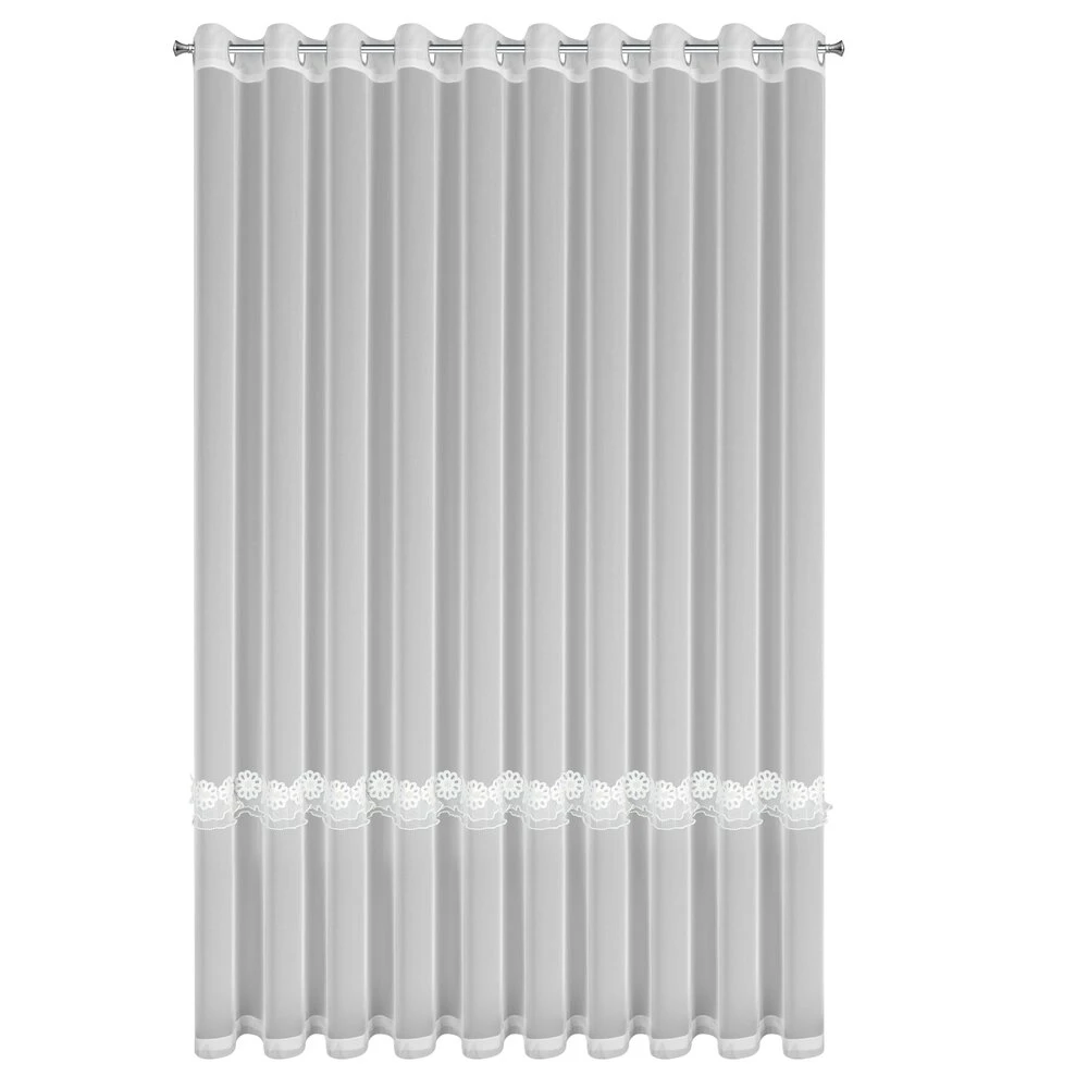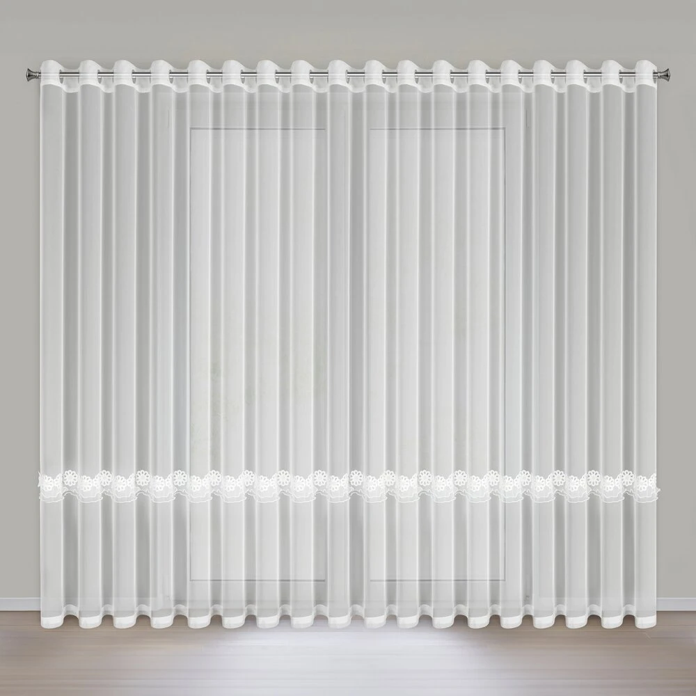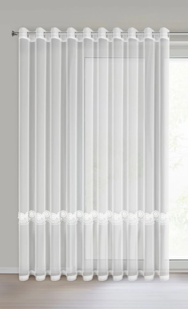 Firana gotowa zdobiona aplikacją szerokość: 350 cm, długość: 250 cm, kolor: biały, Gramatura: 70 GSM, Skład: 100% poliester