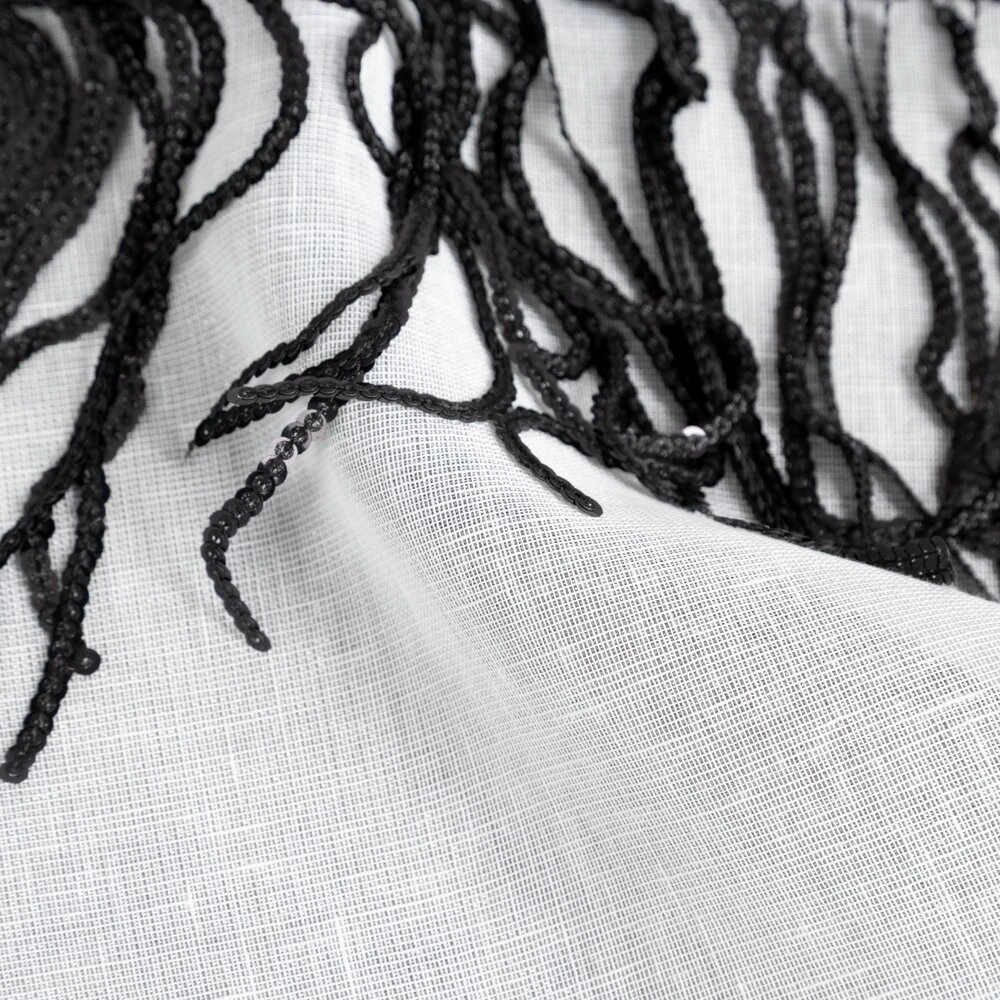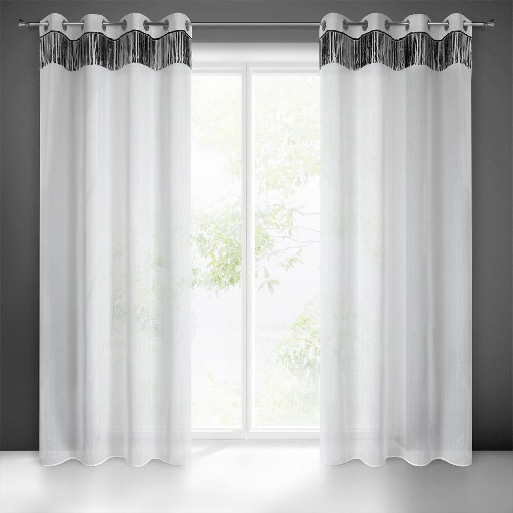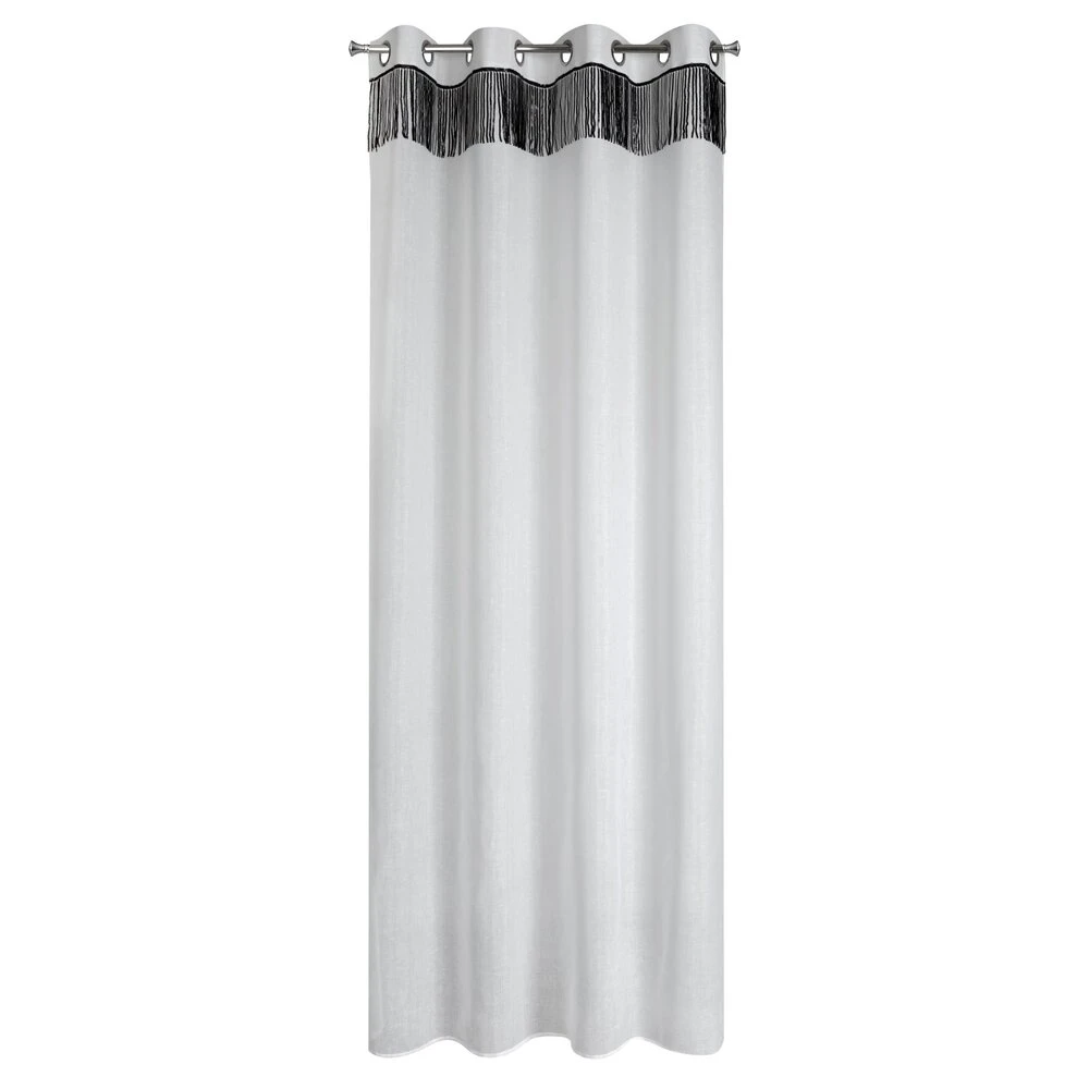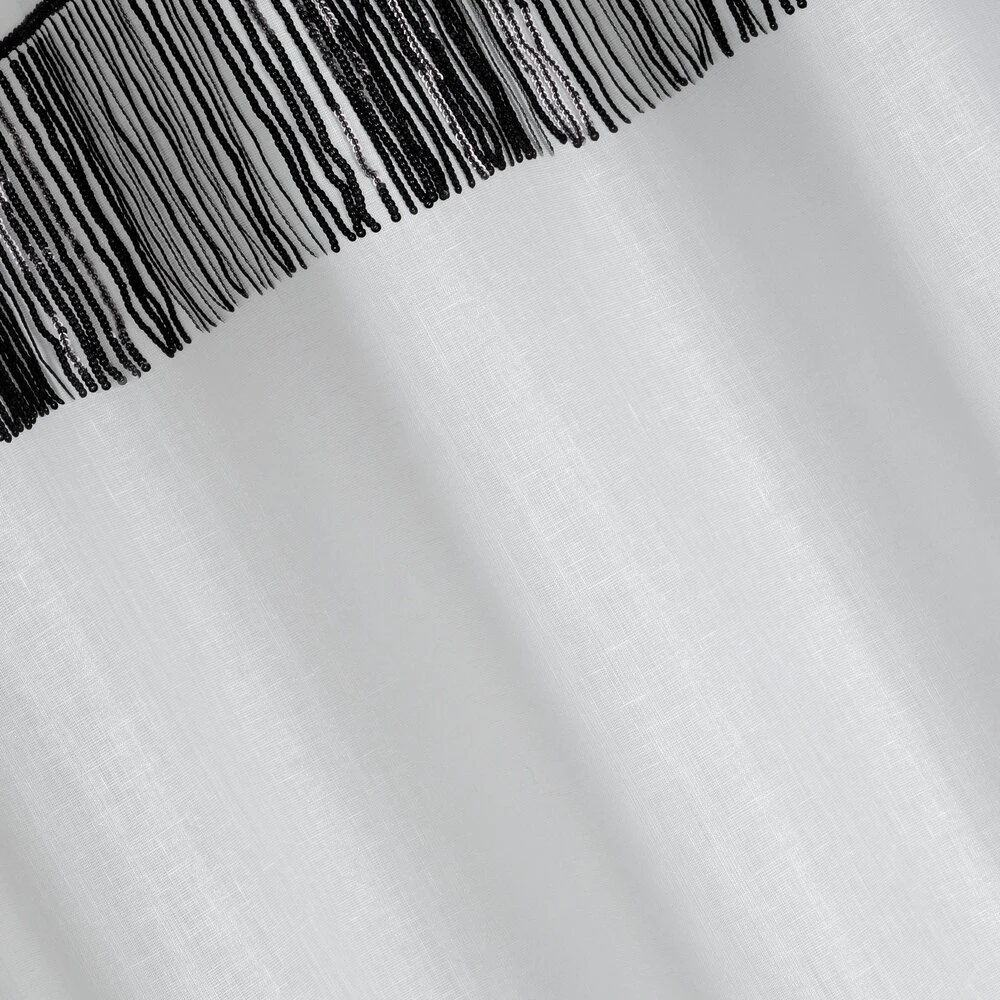 Firana jednokolorowa o strukturze drobnego deszczyku z taśmą cekinową szerokość: 140 cm, długość: 250 cm, kolor: biały, Gramatura: 90 GSM, Skład: 100% poliester