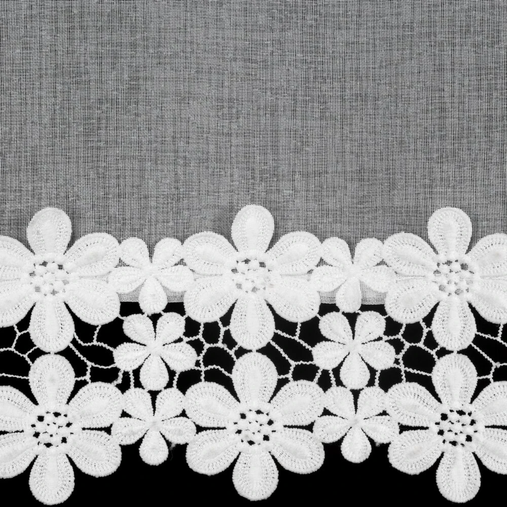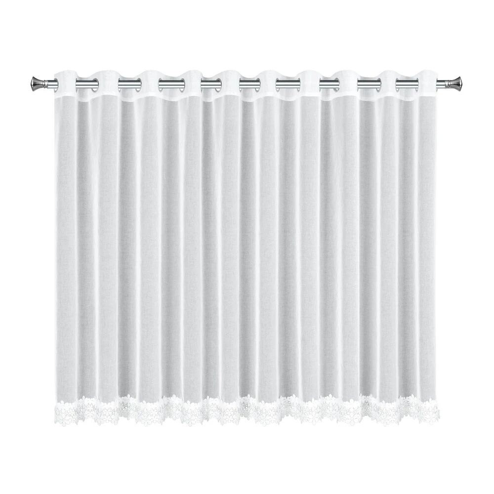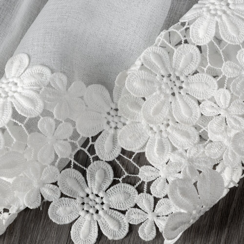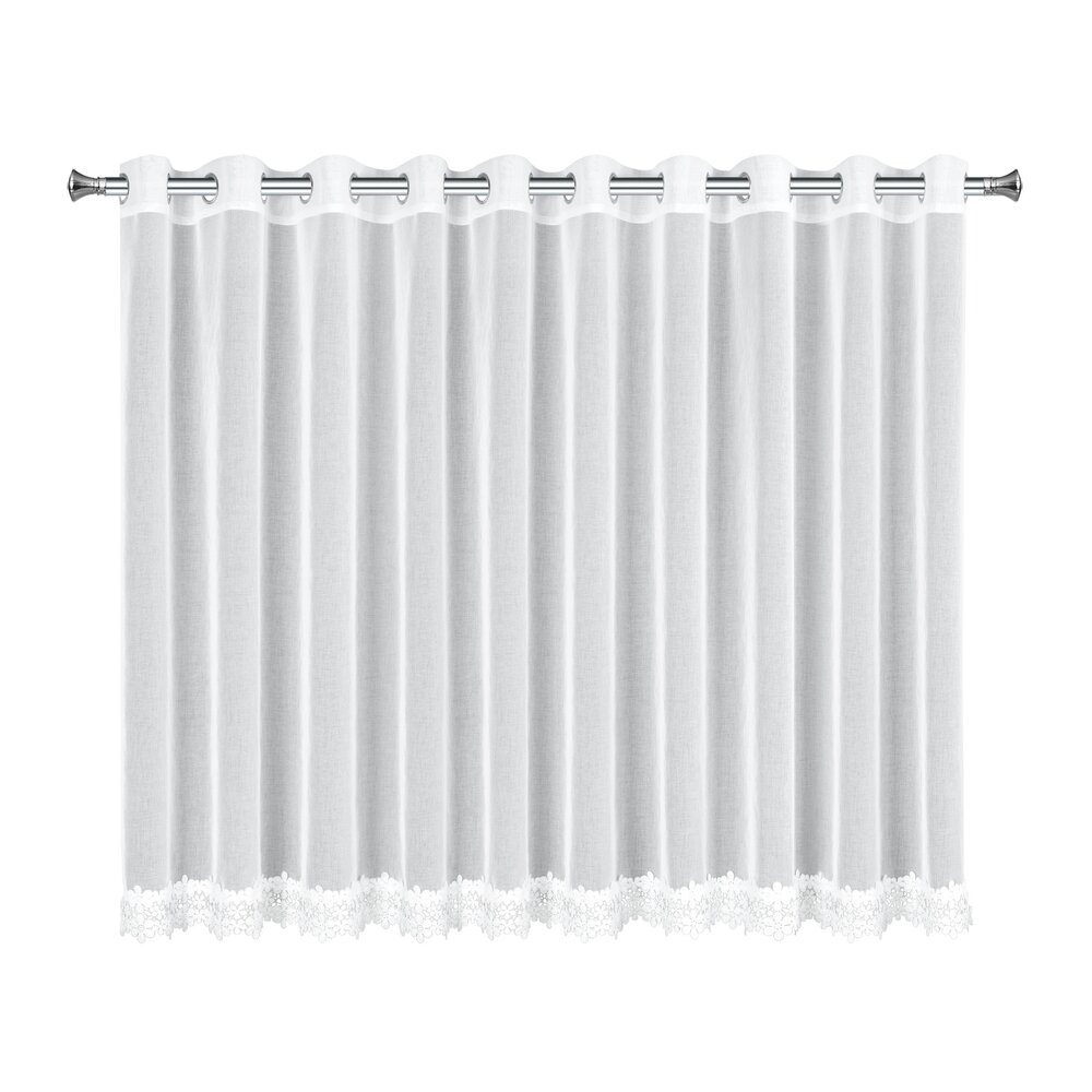 Firana gotowa zdobiona obszywką szerokość: 350 cm, długość: 145 cm, kolor: biały, Gramatura: 70 GSM, Skład: 100% poliester