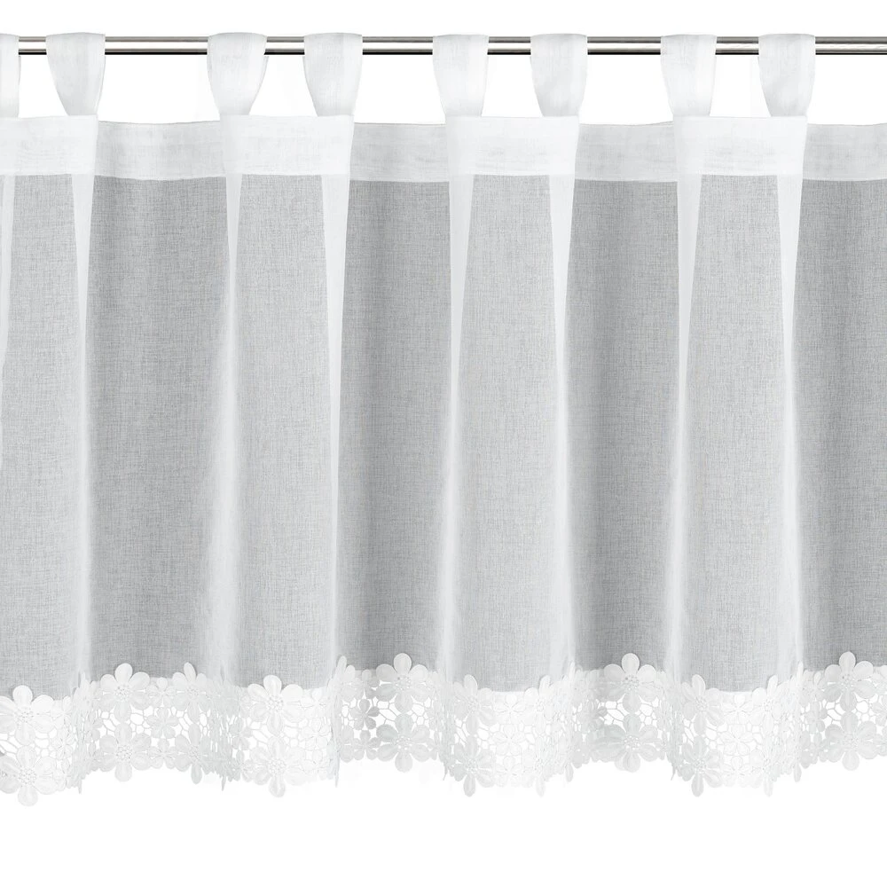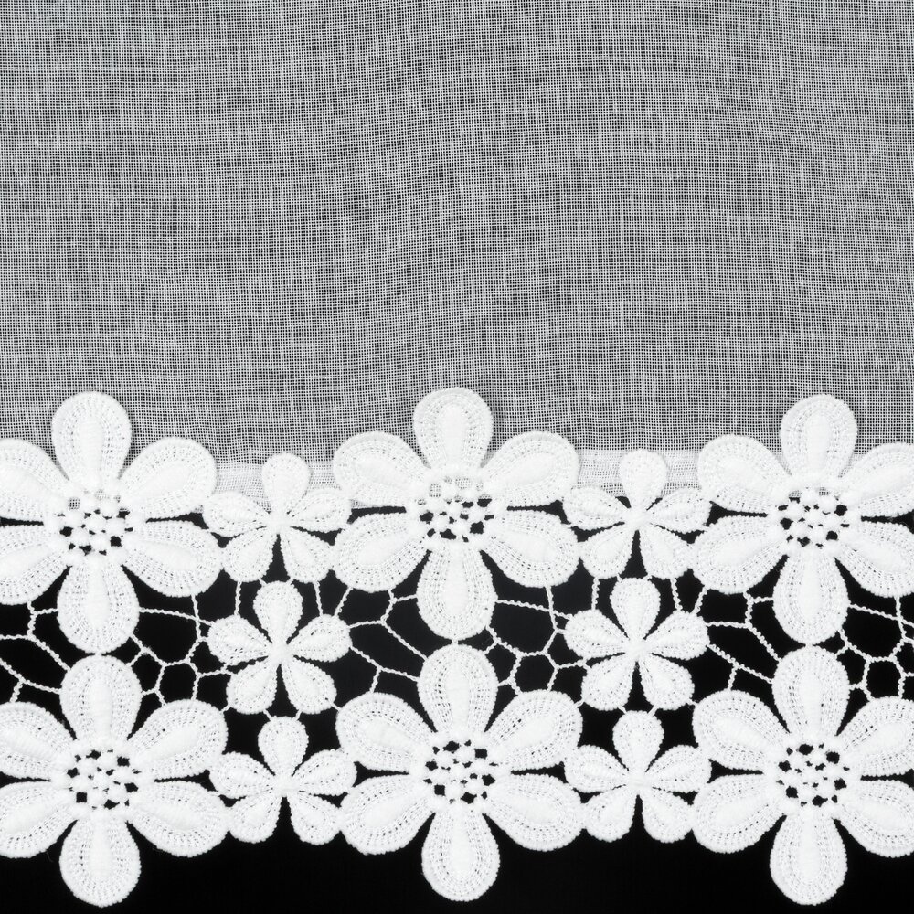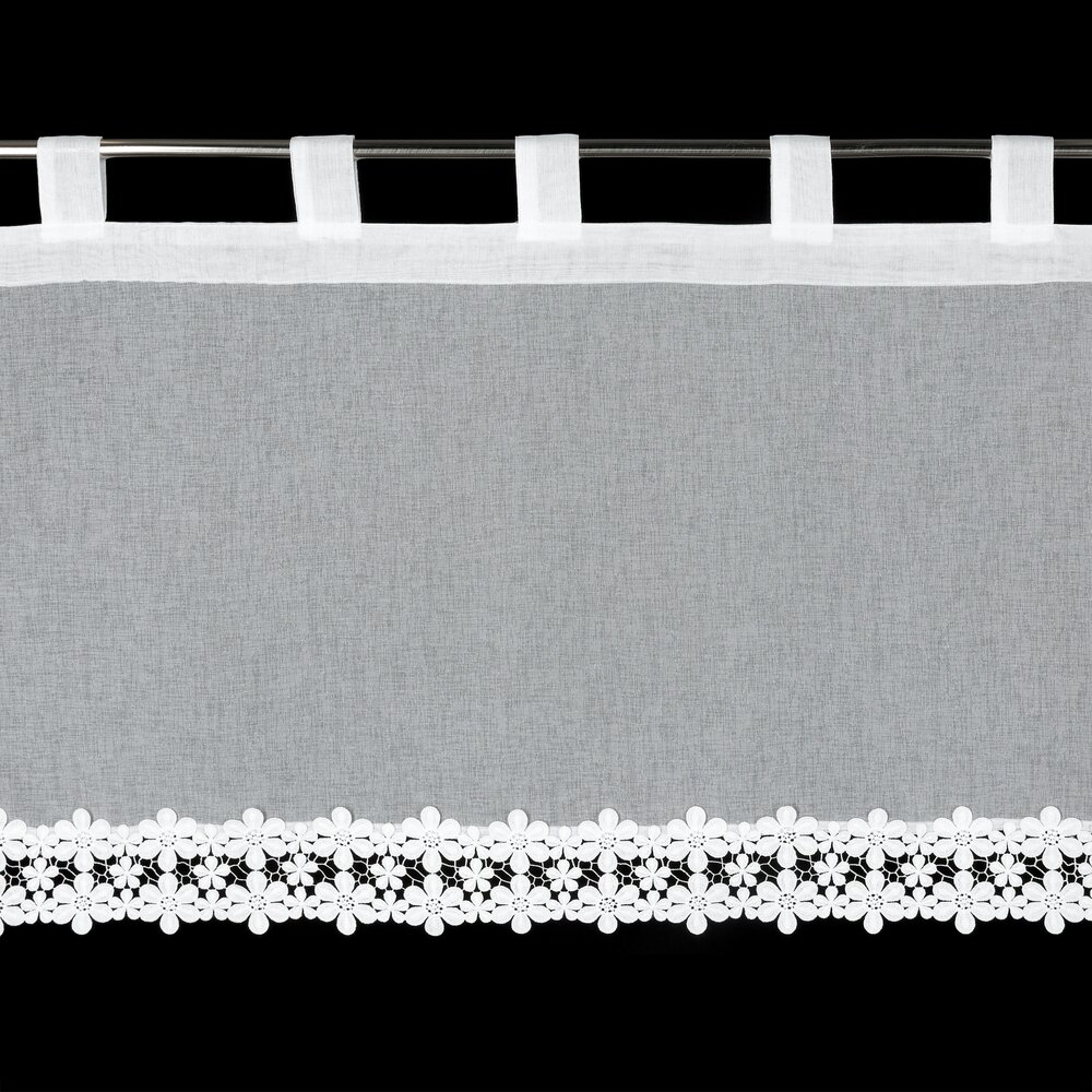 Zazdrostka gotowa zdobiona obszywką szerokość: 150 cm, długość: 70 cm, kolor: biały, Gramatura: 70 GSM, Skład: 100% poliester