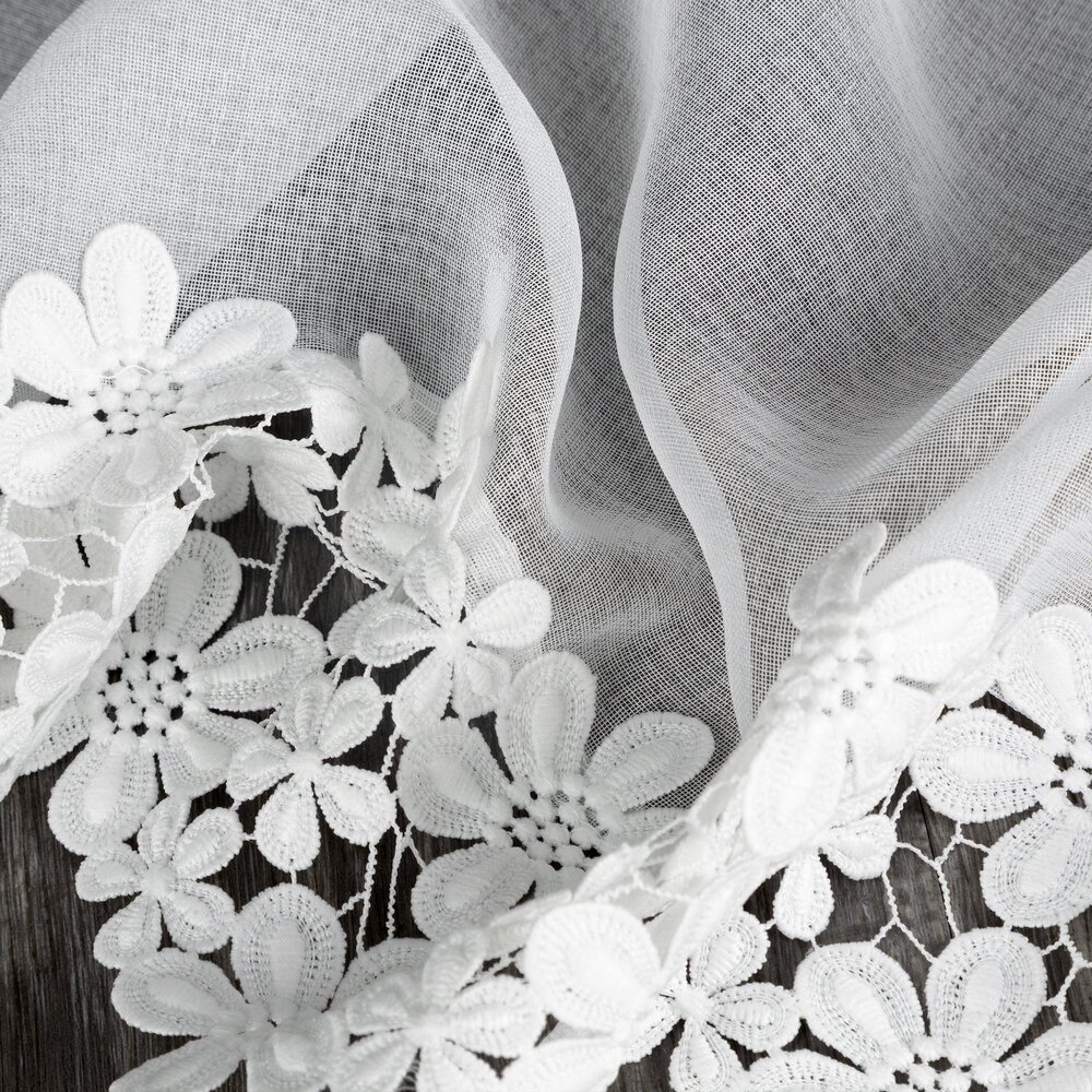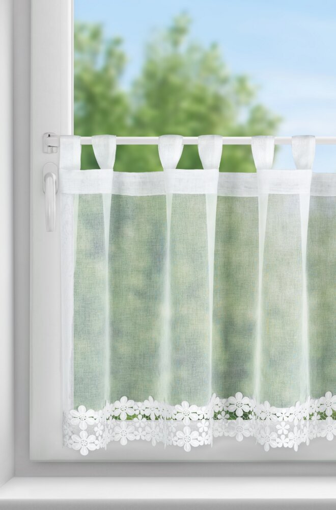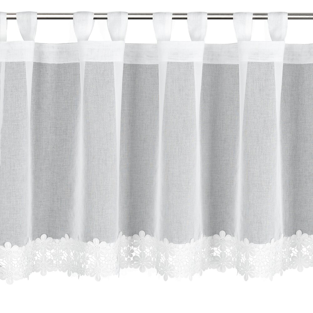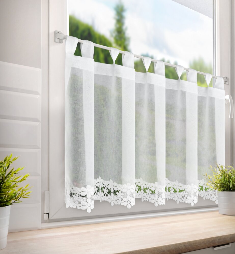 Zazdrostka gotowa zdobiona obszywką szerokość: 150 cm, długość: 70 cm, kolor: biały, Gramatura: 70 GSM, Skład: 100% poliester