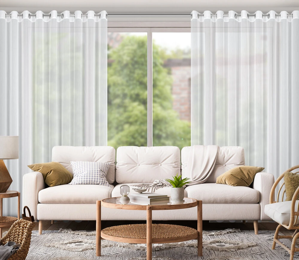 Gładka firana gotowa szerokość: 300 cm, długość: 260 cm, kolor: biały, Gramatura: 80 GSM, Skład: 100% poliester