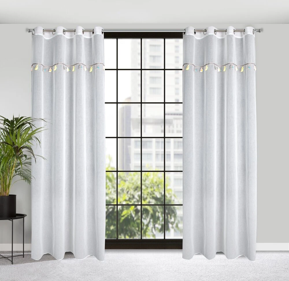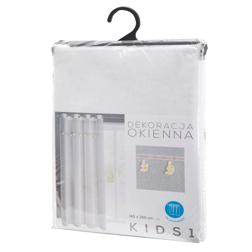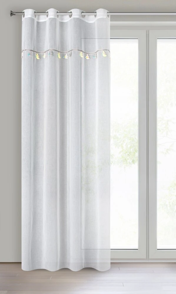 Firana gotowa z wszytą taśmą dekoracyjną z motywem dziecięcym szerokość: 140 cm, długość: 250 cm, kolor: biały, Gramatura: 50 GSM, Skład: 100% poliester