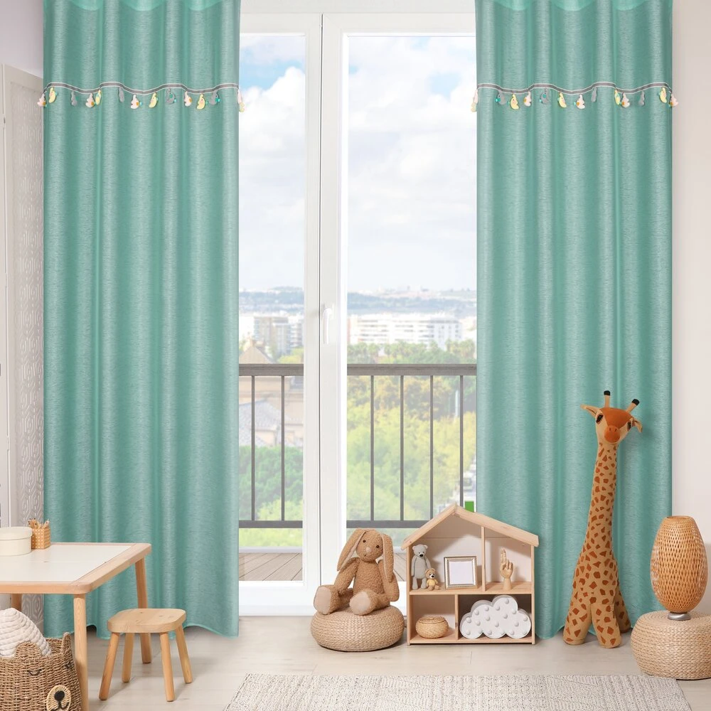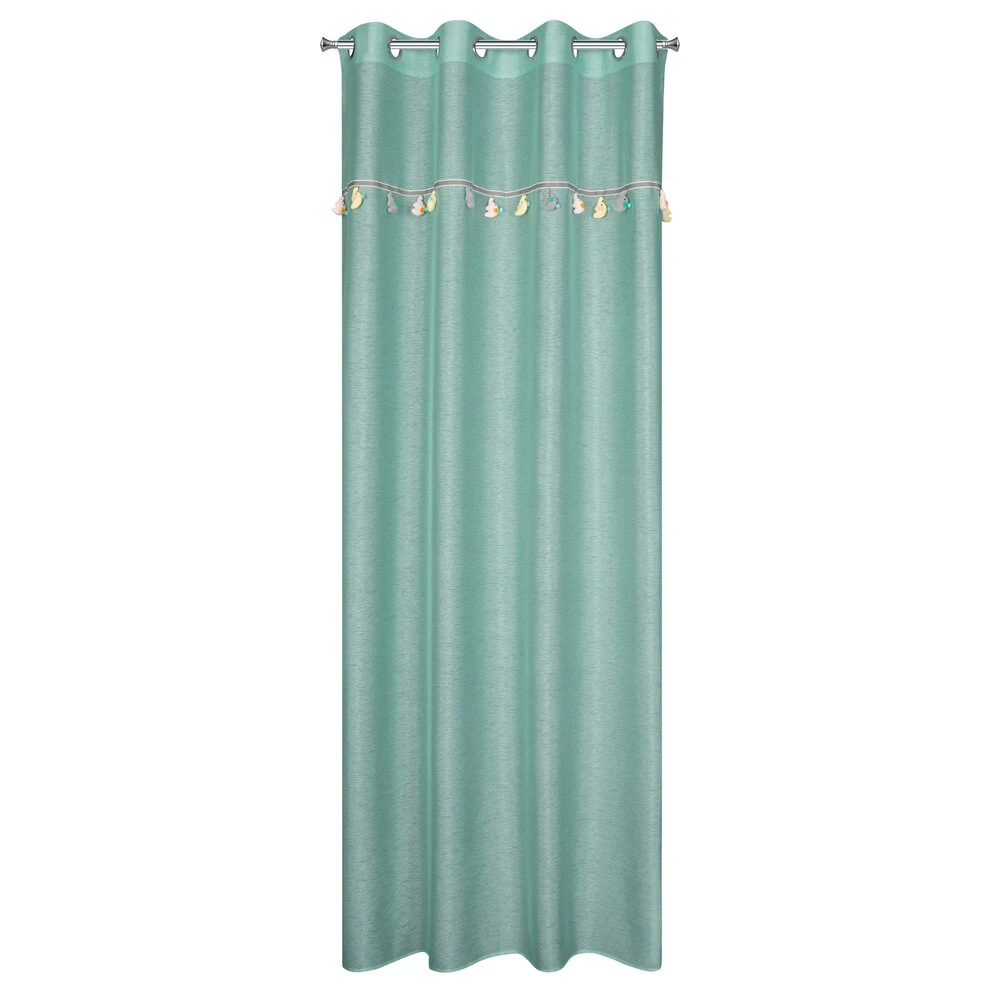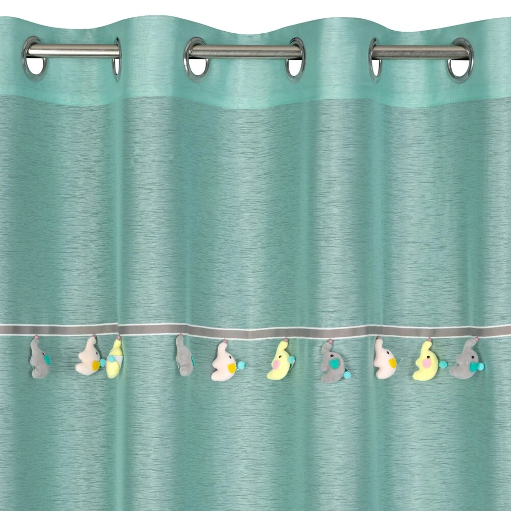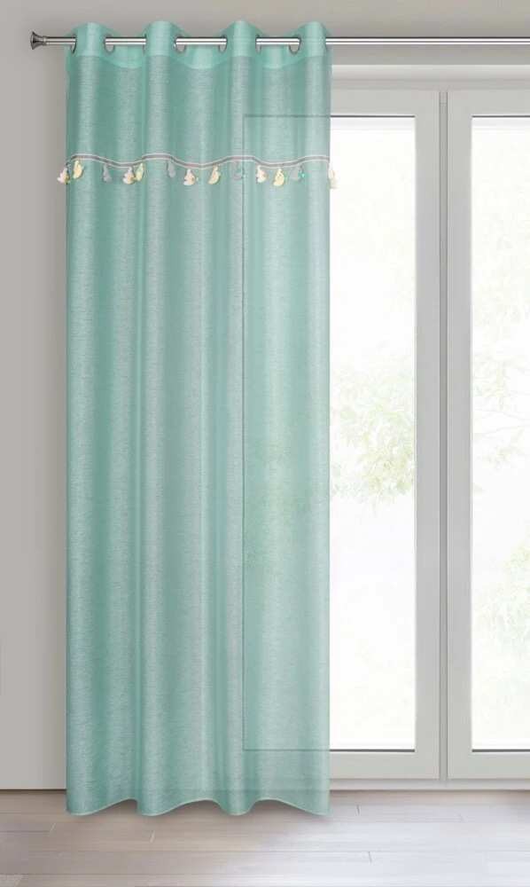 Firana gotowa z wszytą taśmą dekoracyjną z motywem dziecięcym szerokość: 140 cm, długość: 250 cm, kolor: miętowy, Gramatura: 50 GSM, Skład: 100% poliester