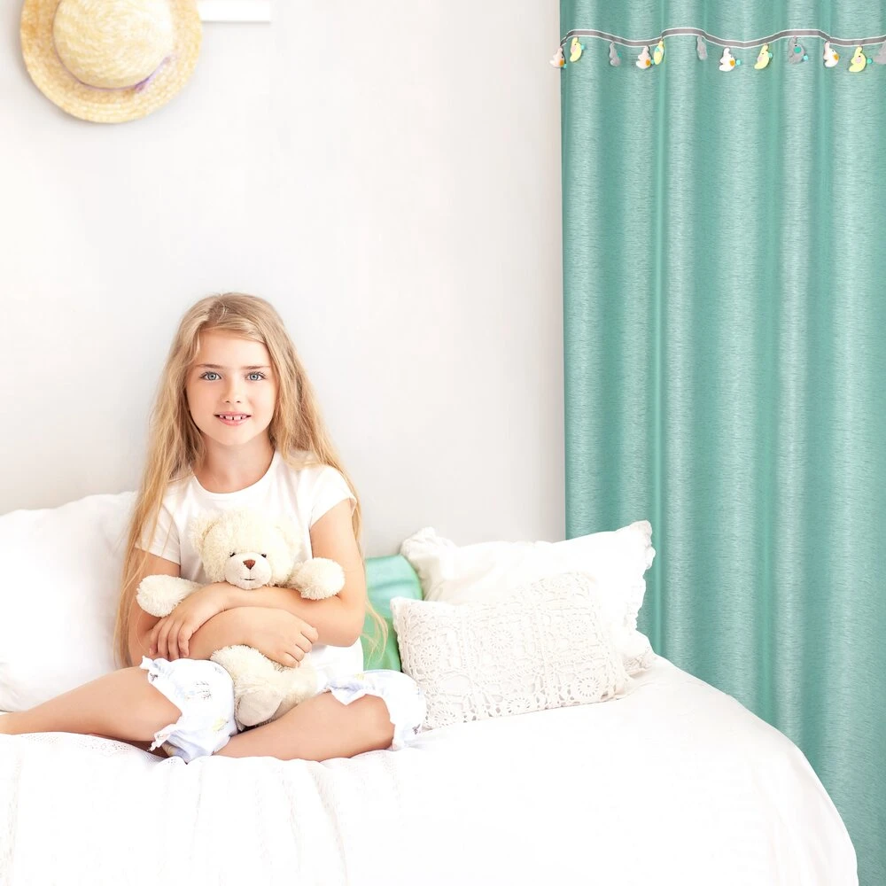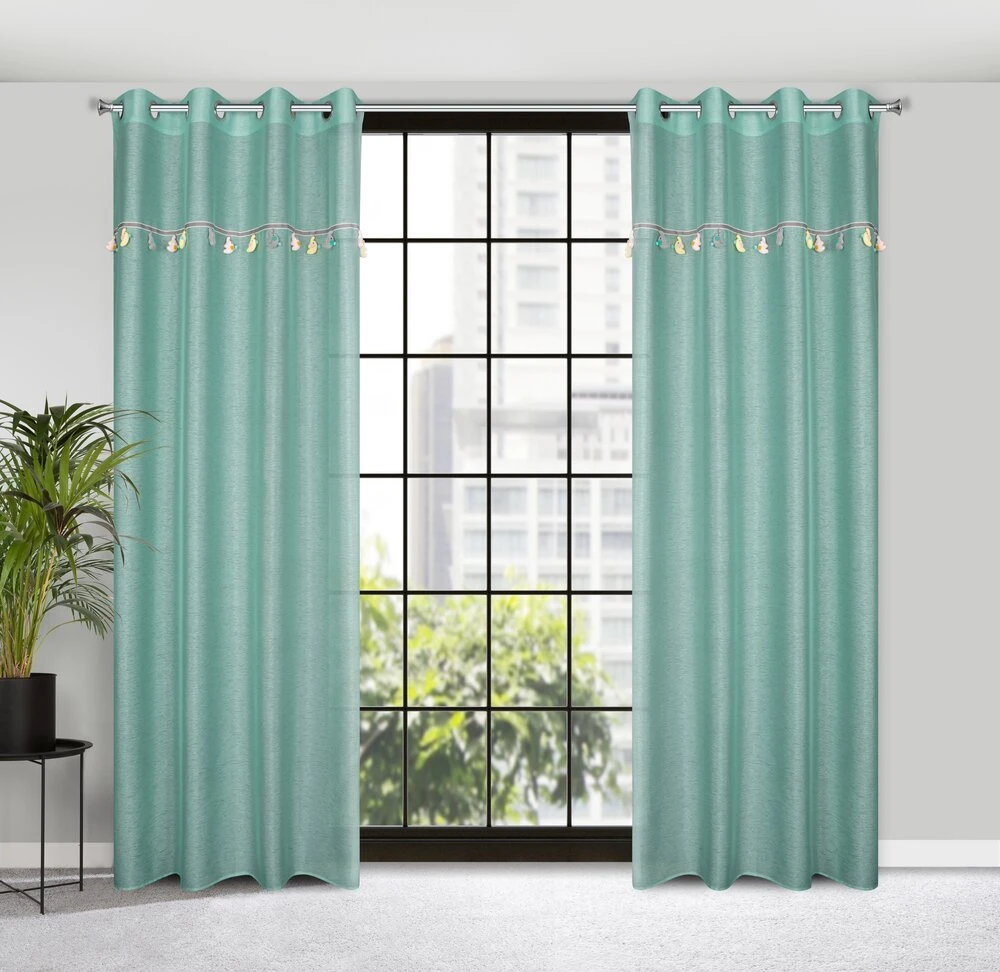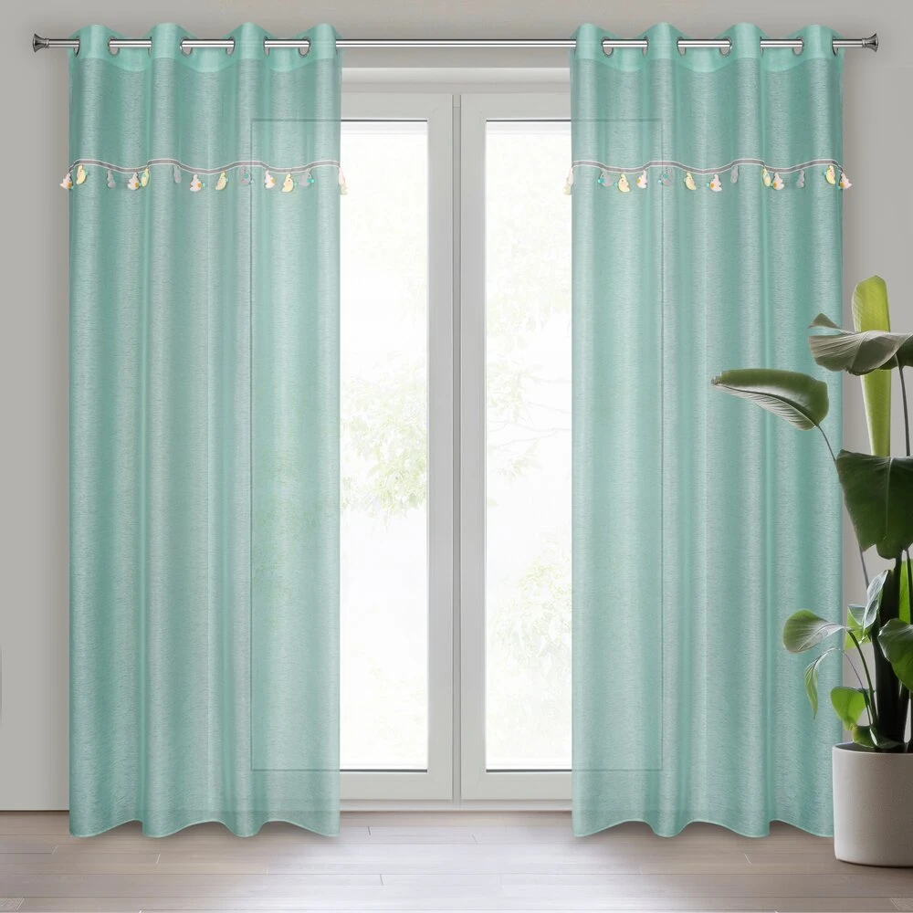 Firana gotowa z wszytą taśmą dekoracyjną z motywem dziecięcym szerokość: 140 cm, długość: 250 cm, kolor: miętowy, Gramatura: 50 GSM, Skład: 100% poliester