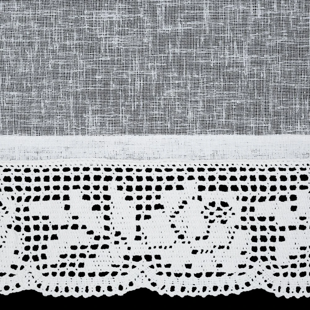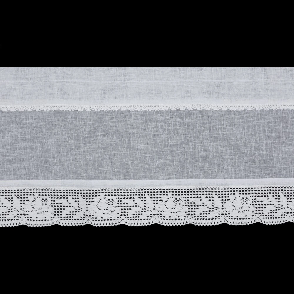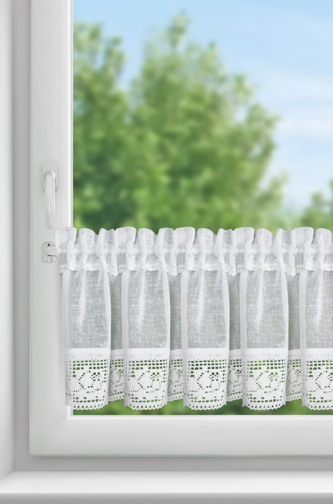 Zazdrostka zdobiona koronką szerokość: 150 cm, długość: 30 cm, kolor: biały, Gramatura: 110 GSM, Skład: 100% poliester