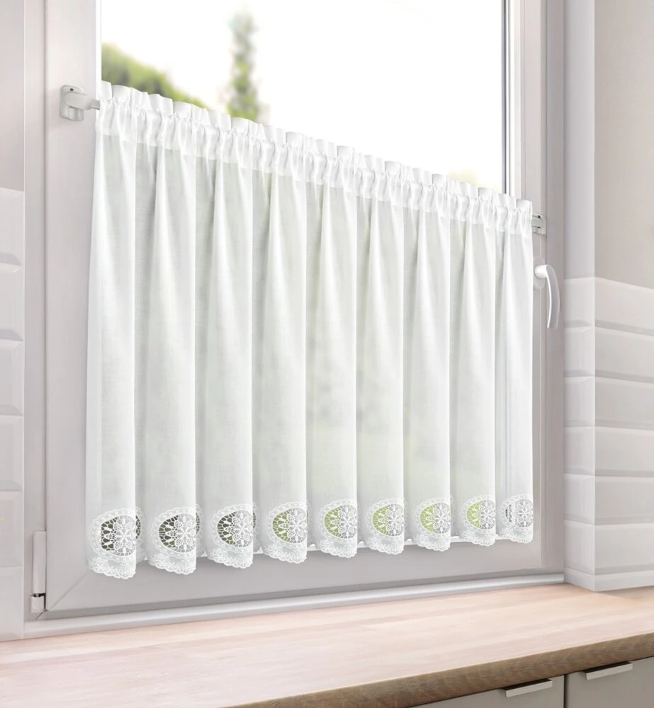 Zazdrostka gotowa bawełniana zdobiona haftem szerokość: 150 cm, długość: 70 cm, kolor: biały, Gramatura: 120 GSM, Skład: 100% bawełna