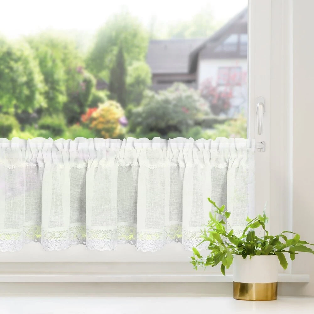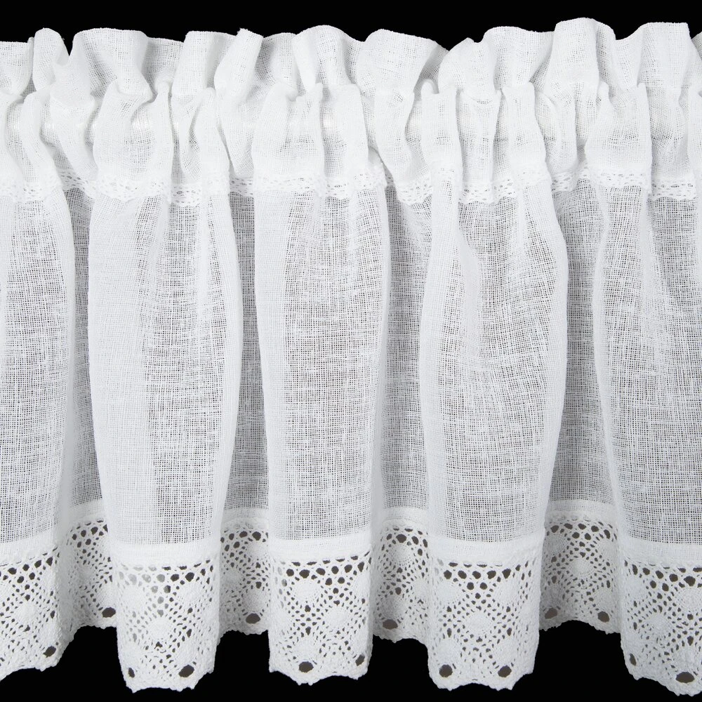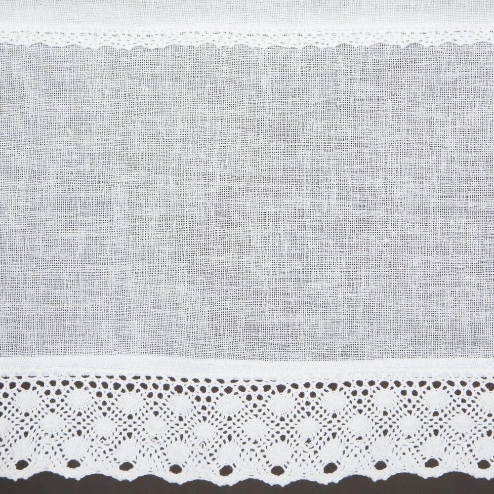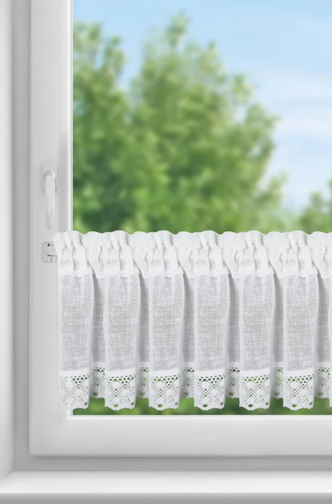 Zazdrostka zdobiona koronką szerokość: 150 cm, długość: 30 cm, kolor: biały, Gramatura: 110 GSM, Skład: 100% poliester