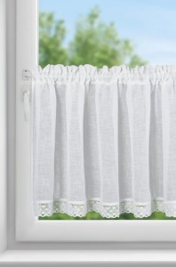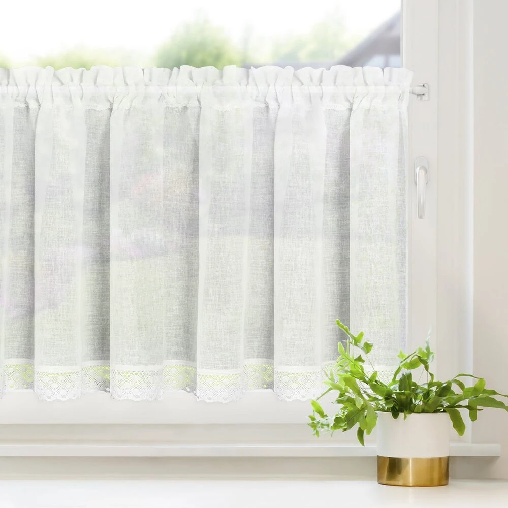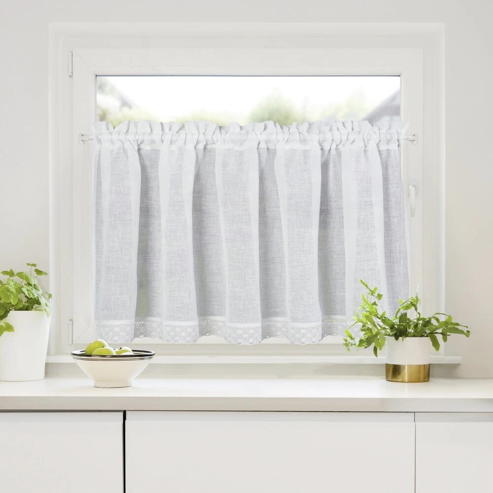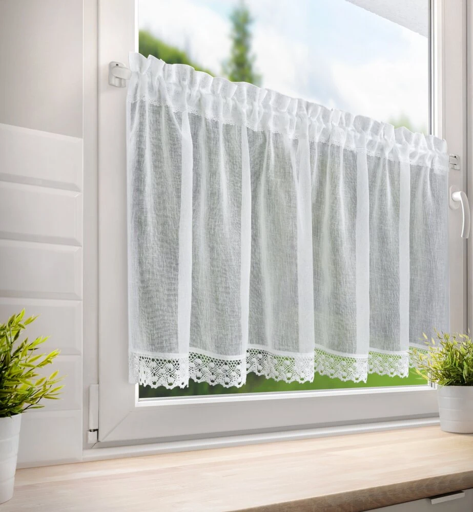 Zazdrostka zdobiona koronką szerokość: 150 cm, długość: 60 cm, kolor: biały, Gramatura: 110 GSM, Skład: 100% poliester