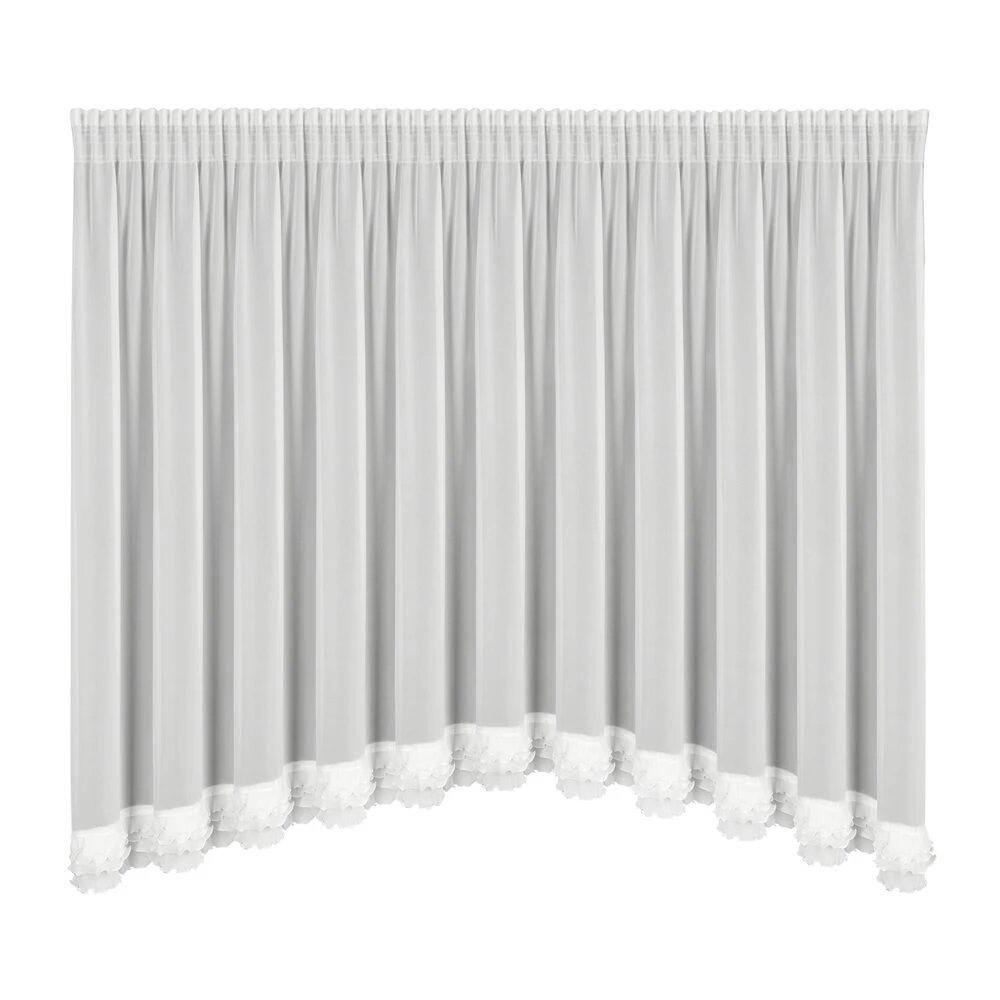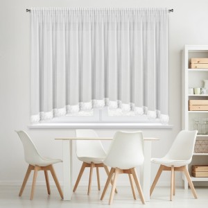 Firana gotowa zdobiona aplikacją z dekoracyjnym łukiem szerokość: 400 cm, długość: 160 cm, kolor: biały, Gramatura: 60 GSM, Skład: 100% poliester