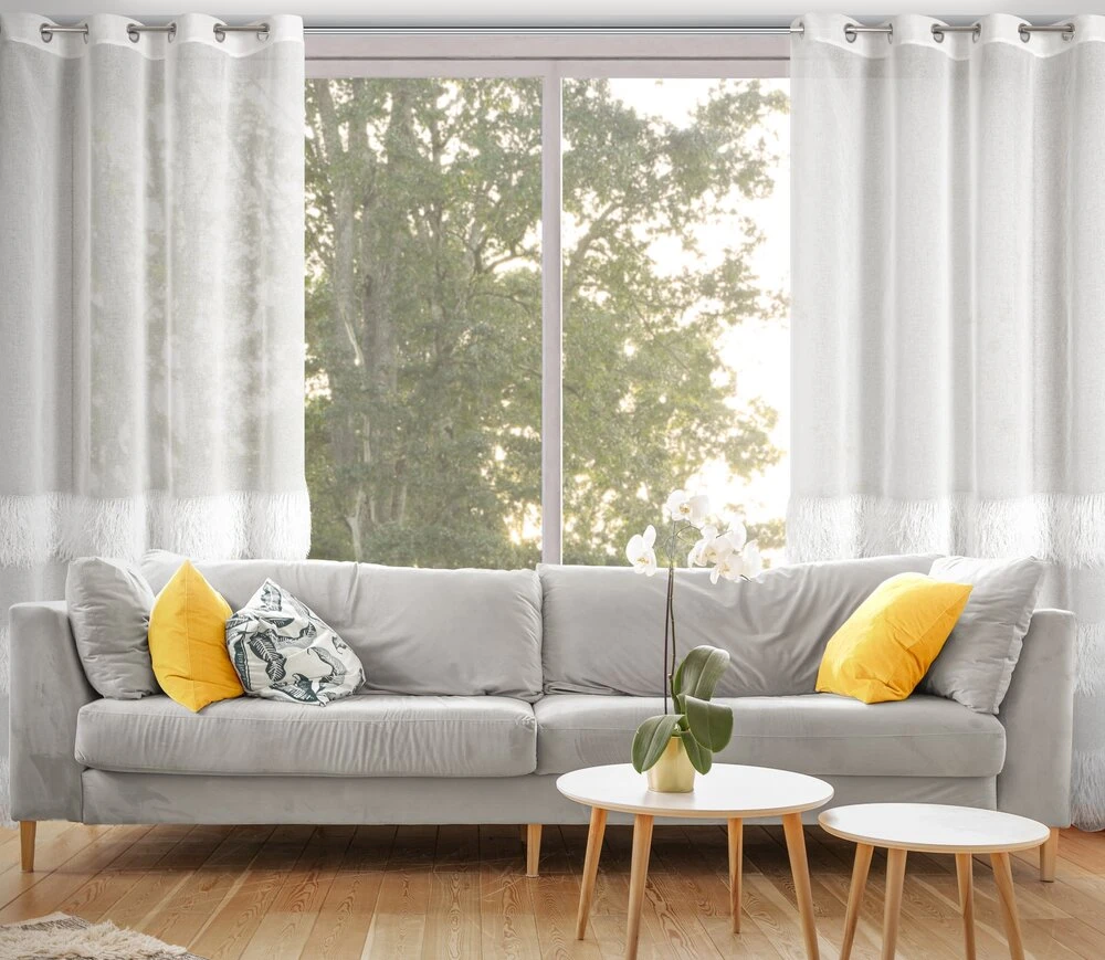 Firana gotowa z aplikacją szerokość: 140 cm, długość: 250 cm, kolor: kremowy, Gramatura: 90 GSM, Skład: 100% poliester