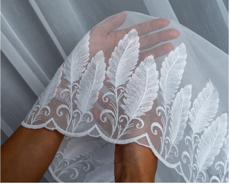 haft na dole tworzy dekoracyjny akcent bez efektu „ciężkiej firany”
