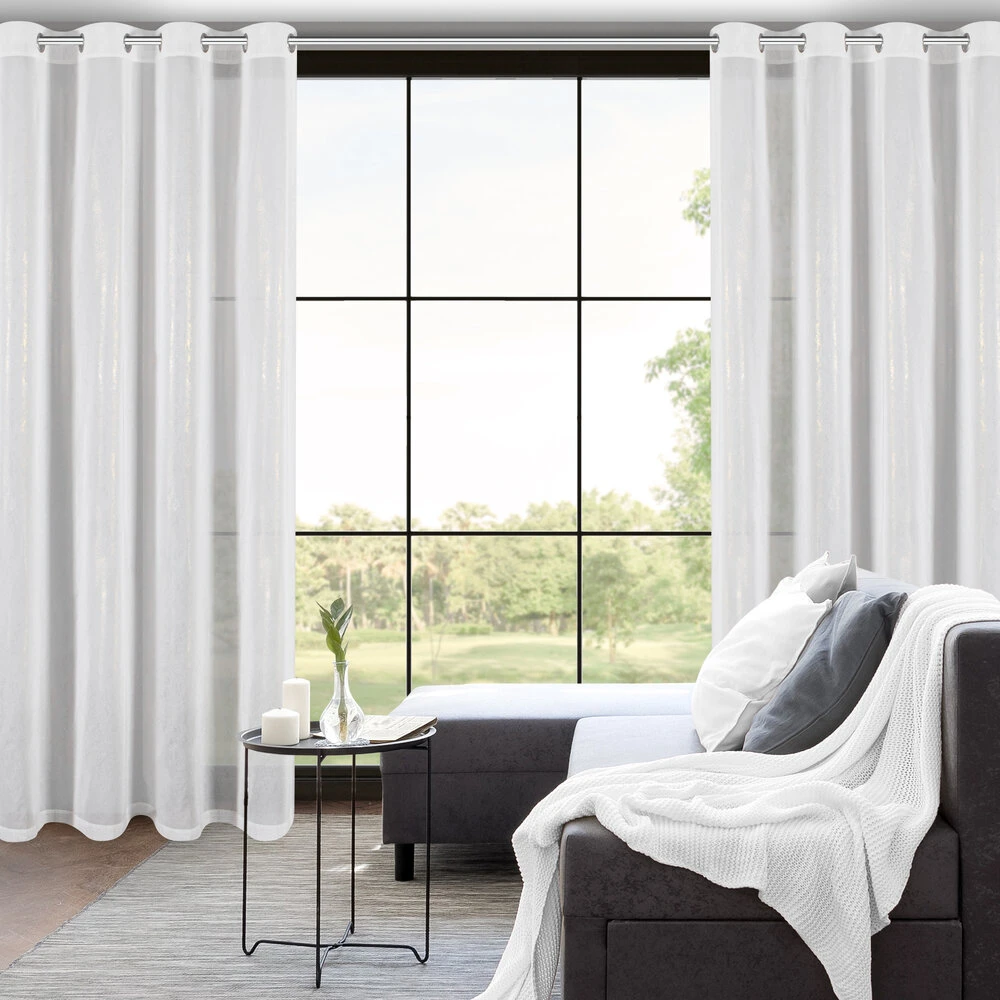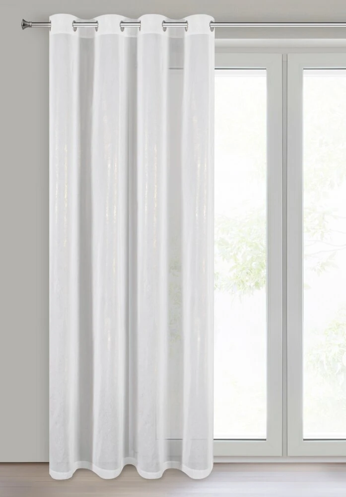 Firana gotowa szyfonowa z szampańskim nadrukiem szerokość: 140 cm, długość: 250 cm, kolor: biały, Gramatura: 85 GSM, Skład: 100% poliester