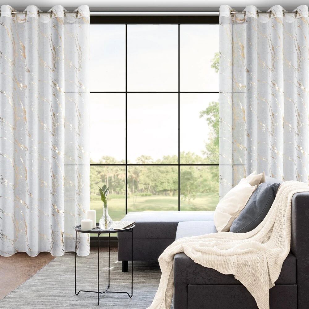 Firana gotowa z błyszczącym nadrukiem szerokość: 140 cm, długość: 250 cm, kolor: biały, Skład: 100% poliester