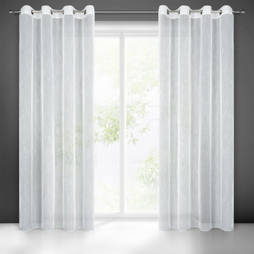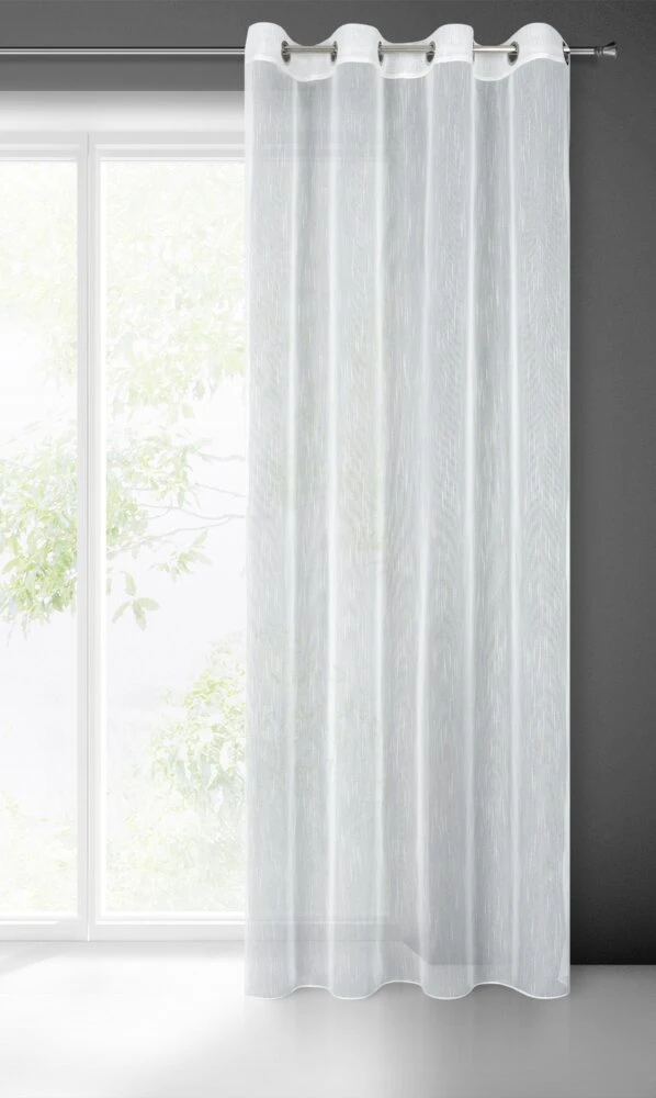Firana gotowa o strukturze deszczyku, styl eco szerokość: 140 cm, długość: 260 cm, kolor: biały, Gramatura: 65 GSM, Skład: 100% poliester