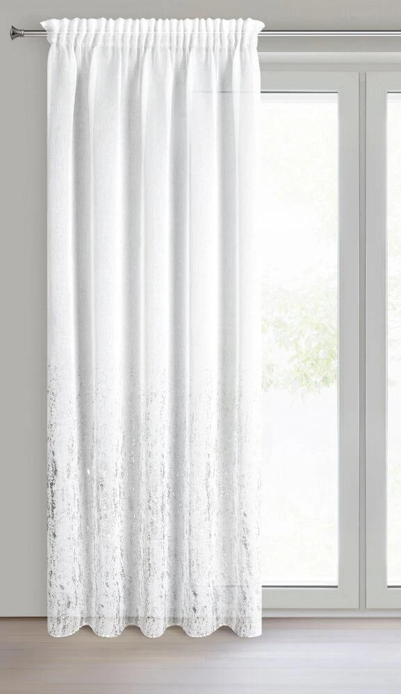 Firana gotowa z błyszczącym nadrukiem piankowym szerokość: 140 cm, długość: 270 cm, kolor: biały, Gramatura: 75 GSM, Skład: 100% poliester