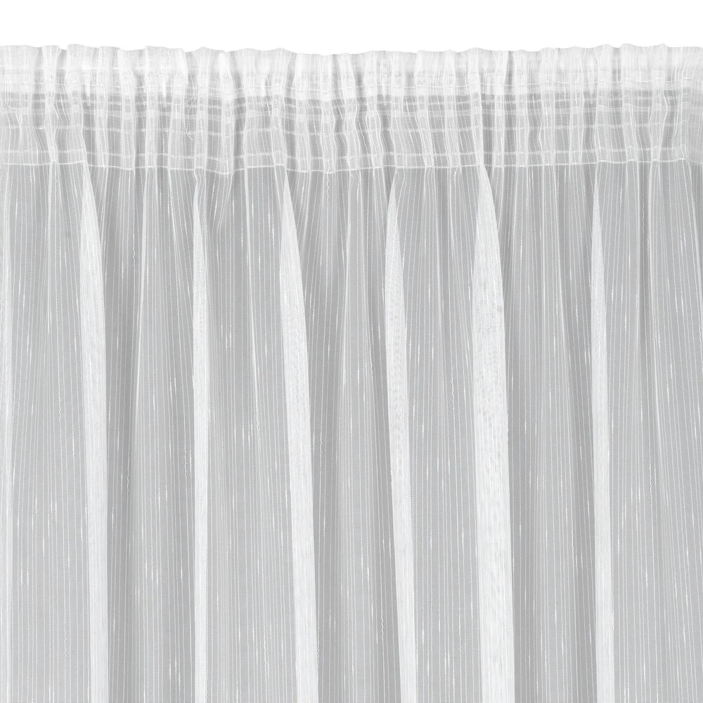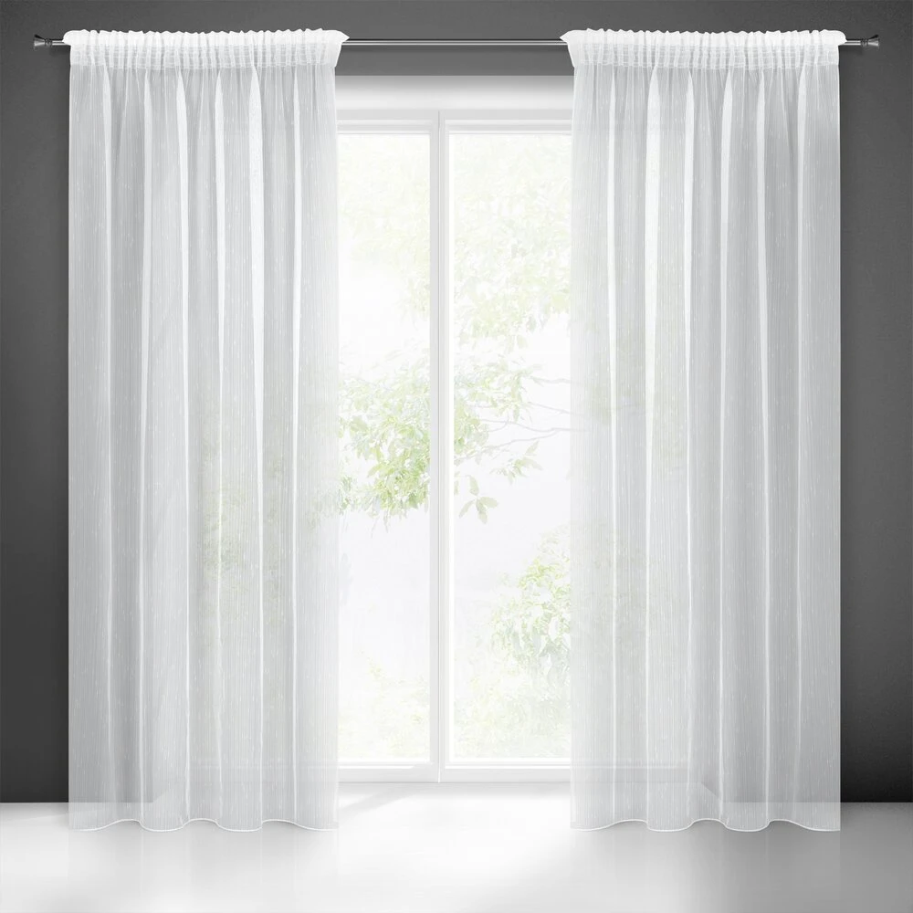 Delikatna firana w pięknym kolorze uszyta z tkaniny o strukturze drobnego deszczyku doskonale przepuszcza światło. Łatwa w prasowaniu i praniu dekoracja. szerokość: 140 cm, długość: 270 cm, kolor: biały, Gramatura: 50 GSM, Skład: 100% poliester