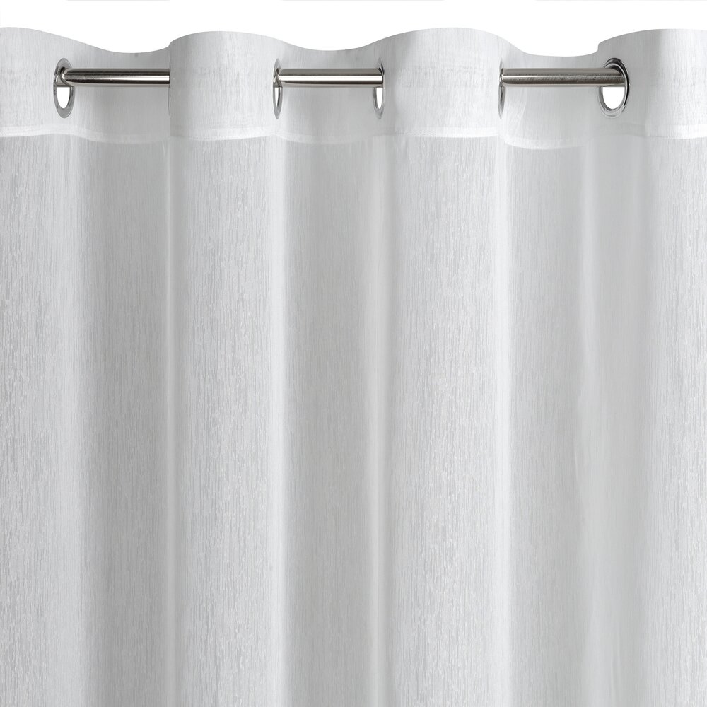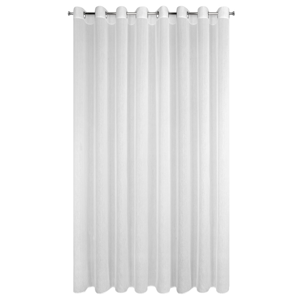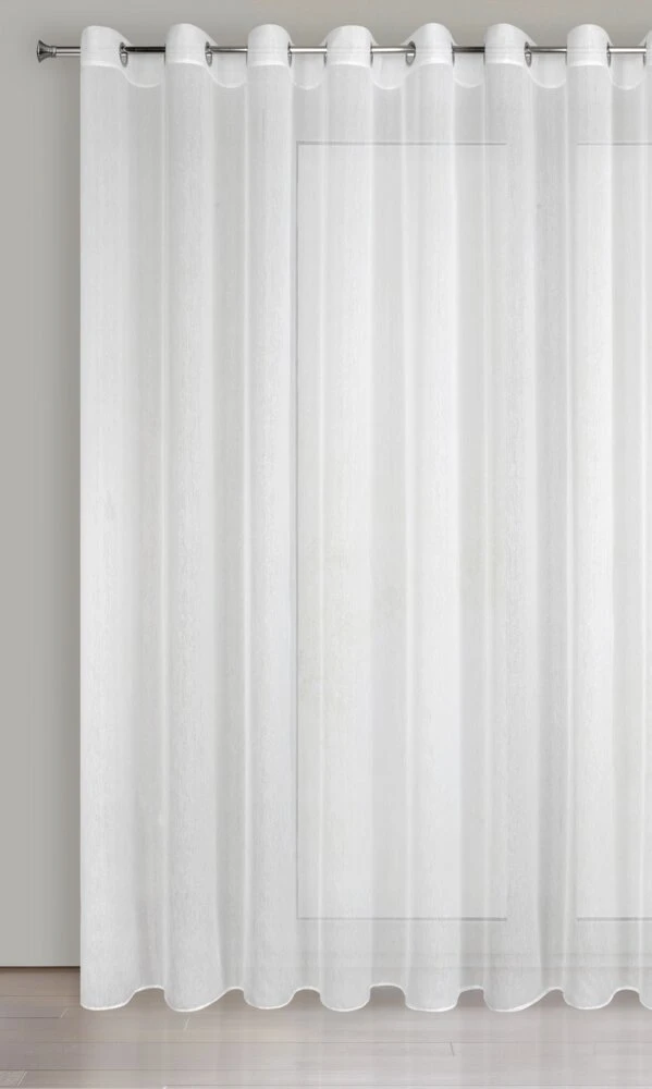 Delikatna firana uszyta z tkaniny o strukturze drobnego deszczyku doskonale przepuszcza światło. Łatwa w prasowaniu i praniu dekoracja. Wzór pionowy. szerokość: 350 cm, długość: 250 cm, kolor: biały, Gramatura: 50 GSM, Skład: 100% poliester