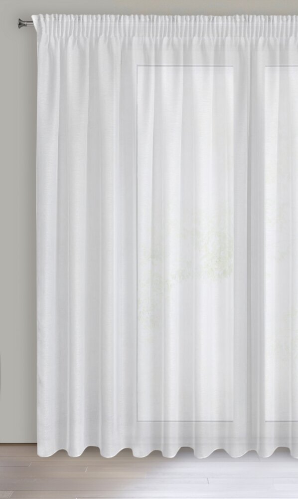 Delikatna firana uszyta z tkaniny o strukturze drobnego deszczyku doskonale przepuszcza światło. Łatwa w prasowaniu i praniu dekoracja. Wzór pionowy. szerokość: 400 cm, długość: 250 cm, kolor: biały, Skład: 100% poliester
