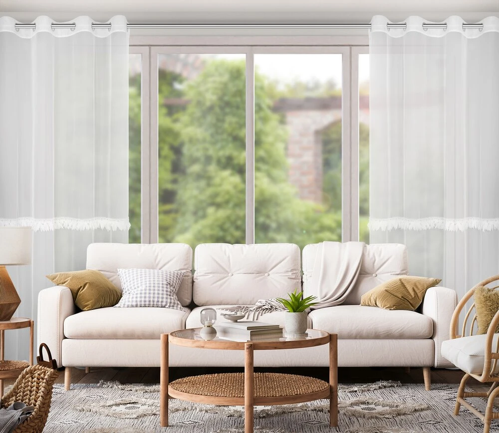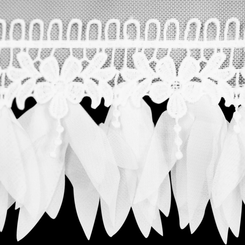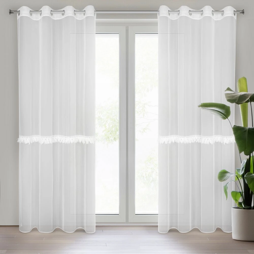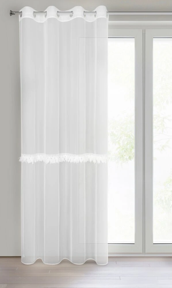 Firana gotowa zdobiona aplikacją szerokość: 140 cm, długość: 260 cm, kolor: biały, Gramatura: 70 GSM, Skład: 100% poliester