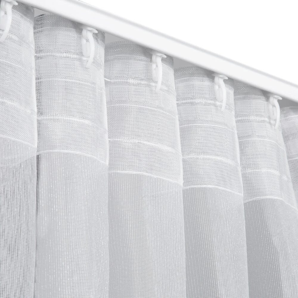 Bardzo delikatna firana o strukturze drobnej, gęstej siateczki. Lśniąca tkanina gwarantuje maksimum poczucia prywatności i przepuszcza światło do wnętrza. szerokość: 400 cm, długość: 300 cm, kolor: biały, Gramatura: 35 GSM, Skład: 100% poliester