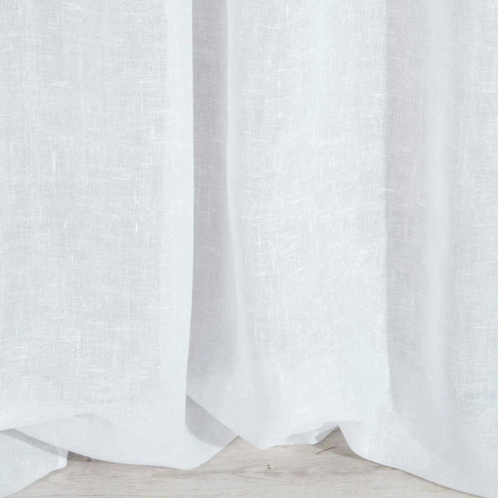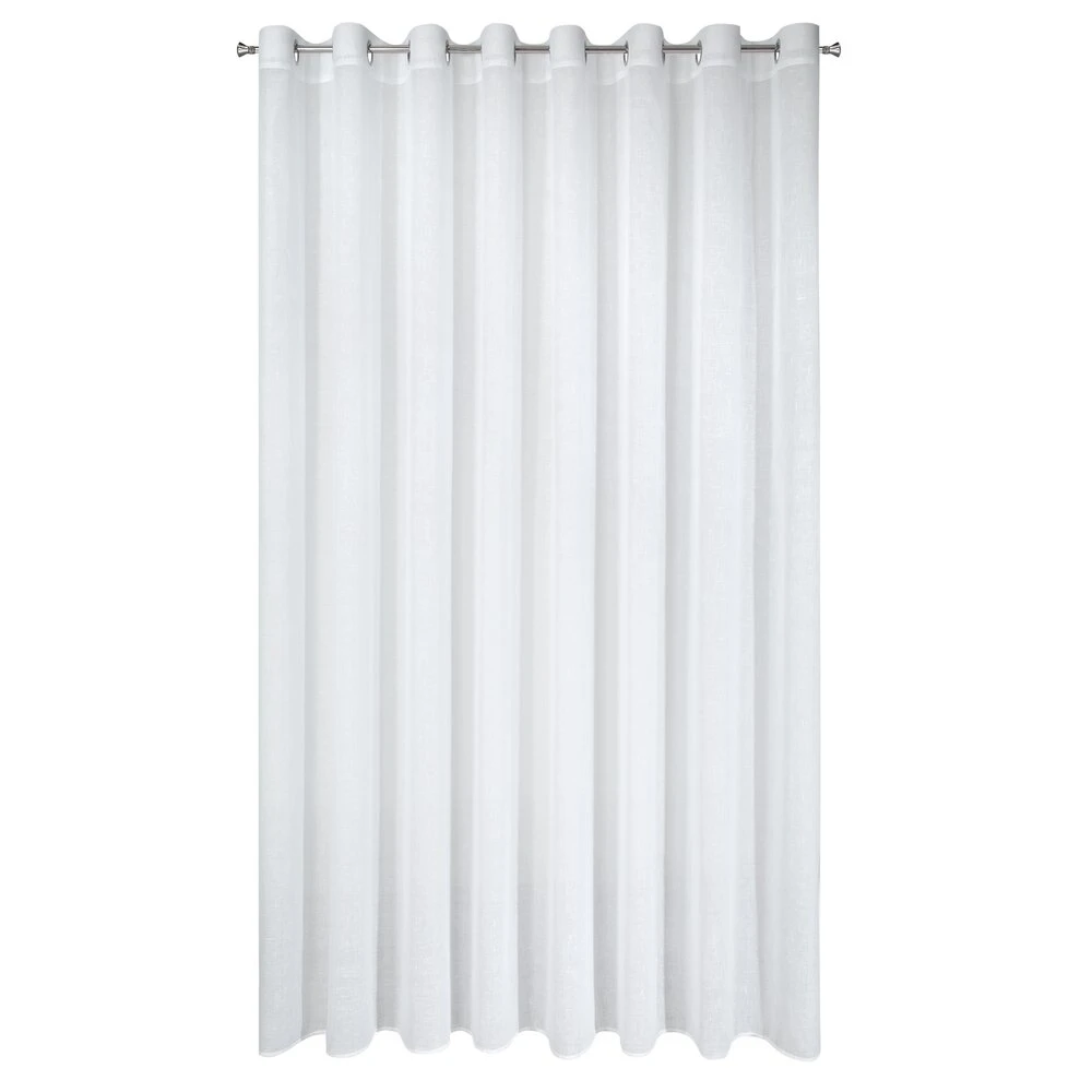 Delikatna firana w pięknym kolorze uszyta z tkaniny o strukturze drobnego deszczyku doskonale przepuszcza światło. Łatwa w prasowaniu i praniu dekoracja. szerokość: 400 cm, długość: 250 cm, kolor: biały, Gramatura: 90 GSM, Skład: 100% poliester