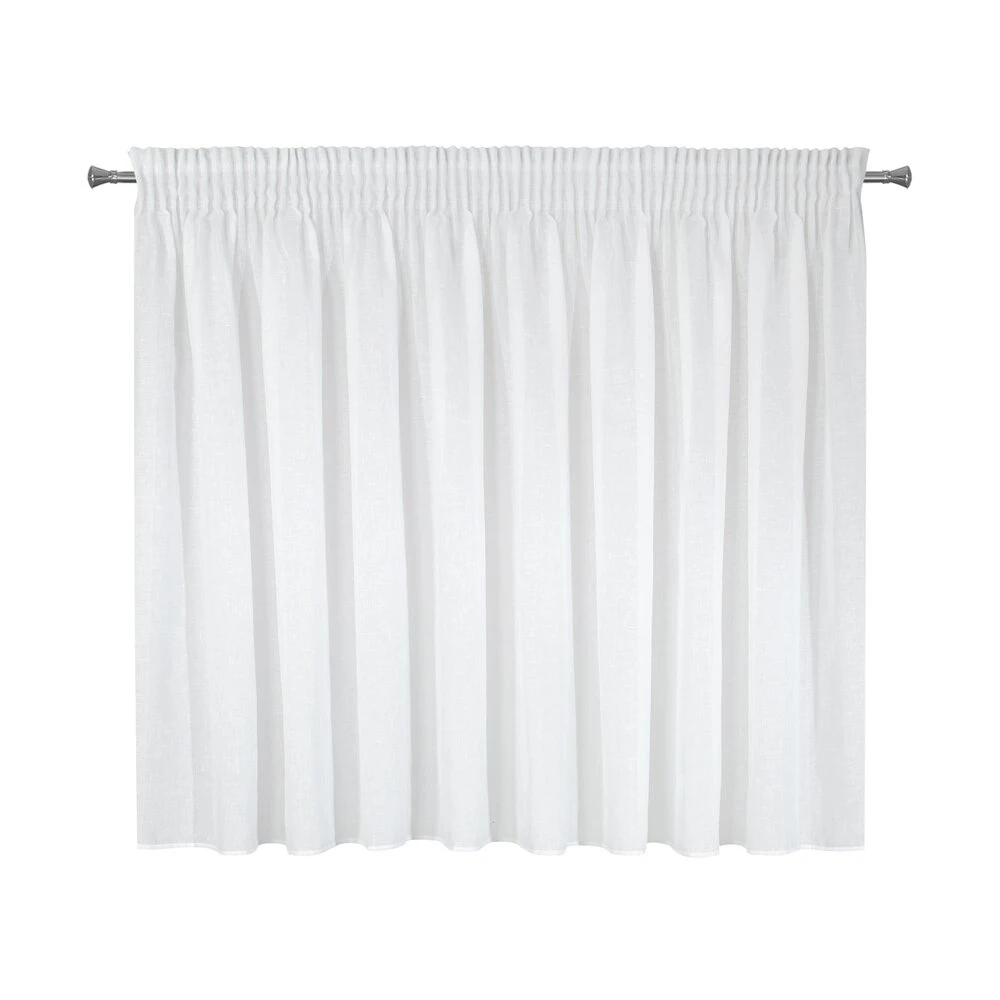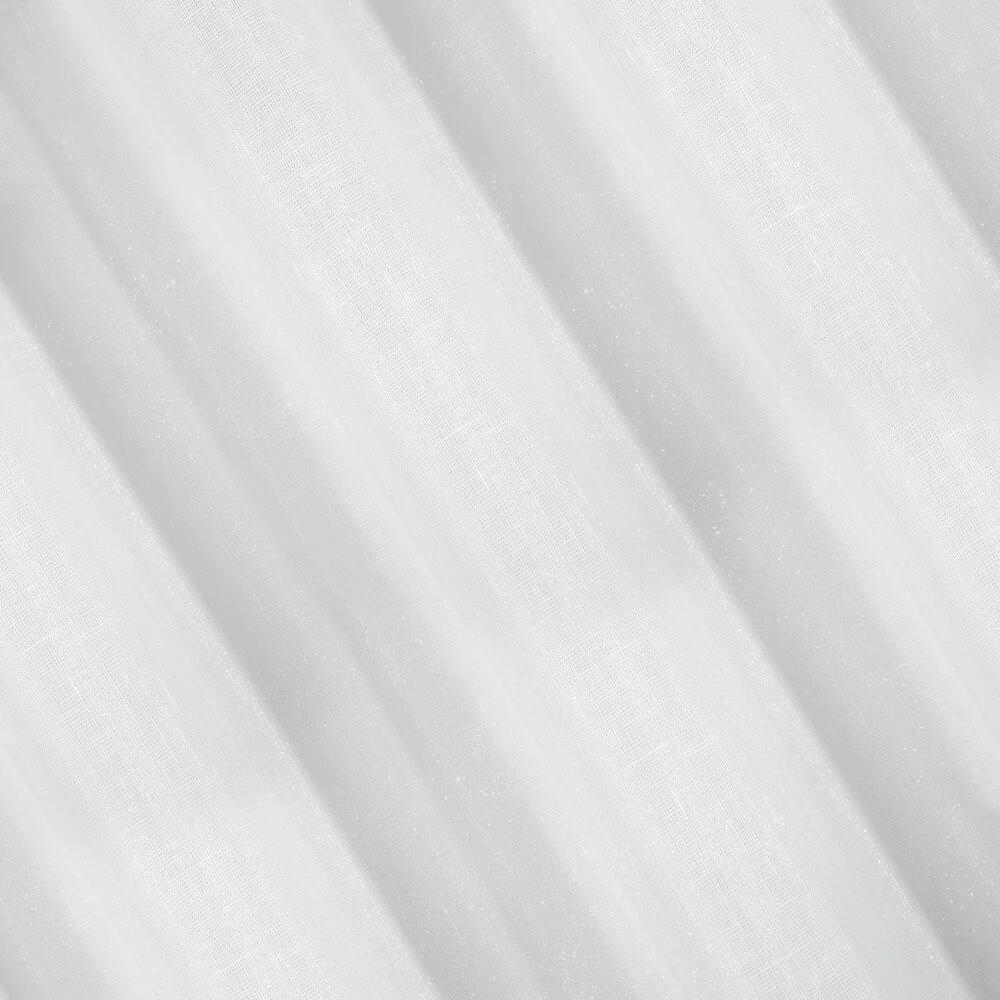 Delikatna firana w pięknym kolorze uszyta z tkaniny o strukturze drobnego deszczyku doskonale przepuszcza światło. Łatwa w prasowaniu i praniu dekoracja. szerokość: 400 cm, długość: 145 cm, kolor: biały, Gramatura: 90 GSM, Skład: 100% poliester