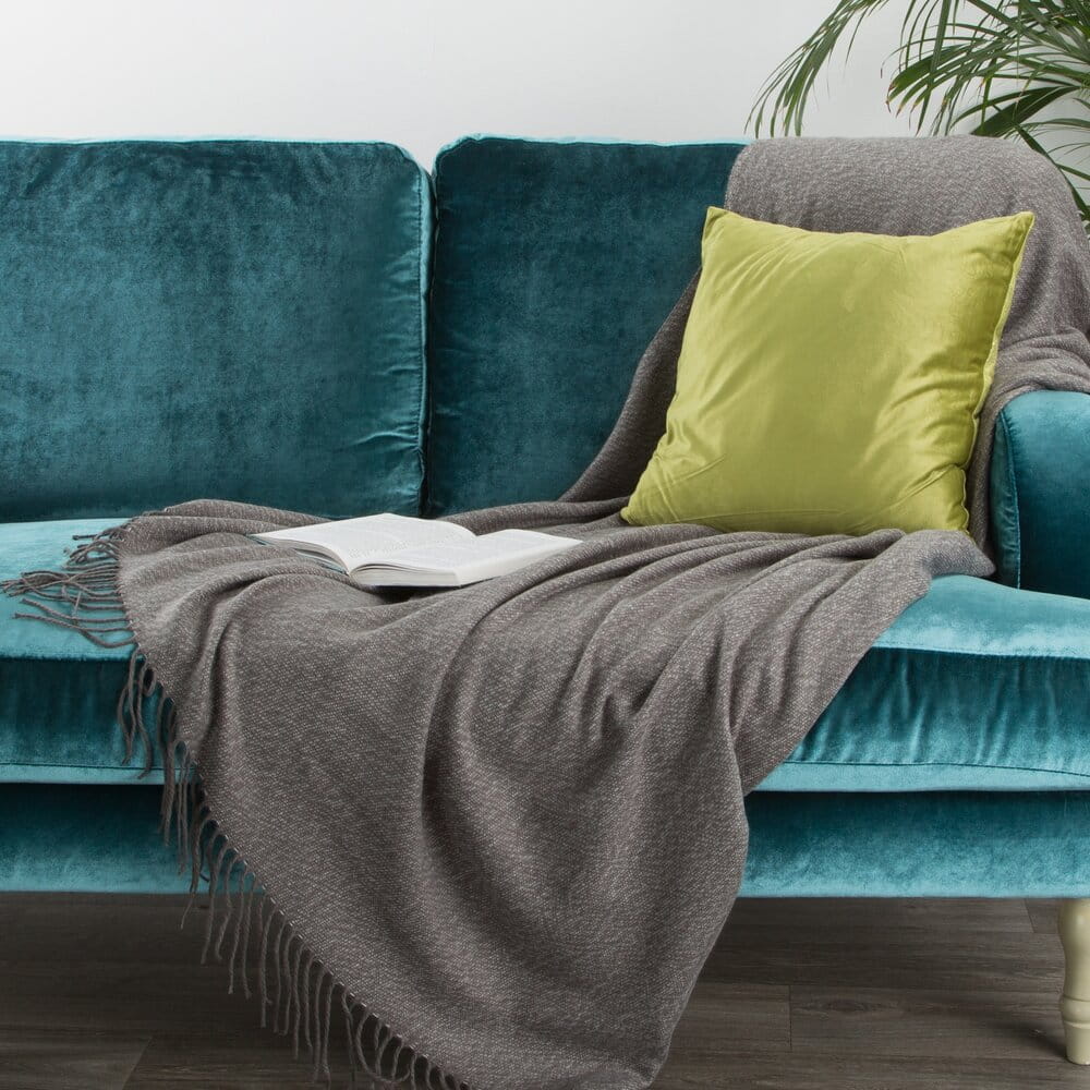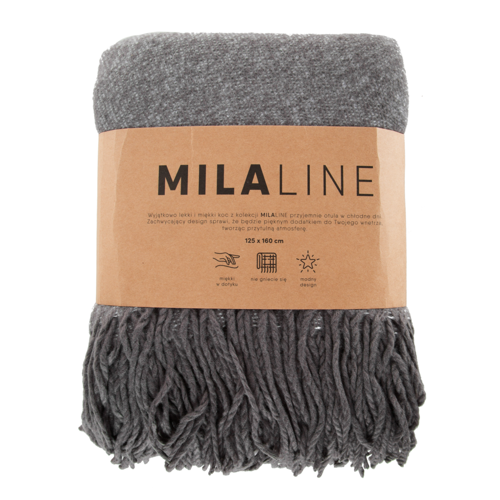 Koc akrylowy z frędzlami szerokość: 125 cm, długość: 160 cm, kolor: stalowy, Gramatura: 260 GSM, Skład: 100% akryl