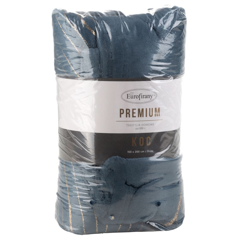 Koc flano bardzo miękki w dotyku z błyszczącym nadrukiem szerokość: 150 cm, długość: 200 cm, kolor: granatowy/złoty, Gramatura: 250GSM GSM, Skład: 100%poliester