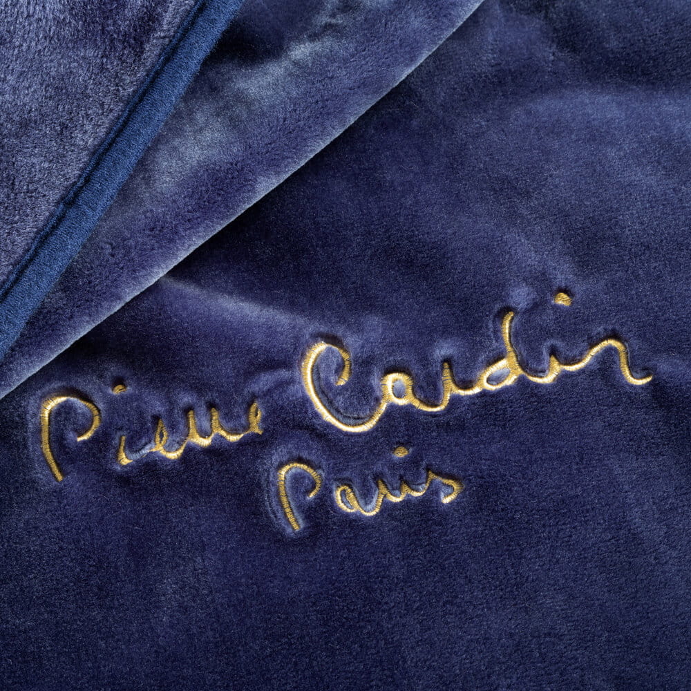 Jednokolorowy, ekskluzywny koc z kolekcji Pierre Cardin z haftowanym logo projektanta. Bardzo puszysty pled akrylowy z poliesterem jest wyjątkowo ciepły. szerokość: 220 cm, długość: 240 cm, kolor: granatowy, Gramatura: 700 GSM, Skład: 100% poliester