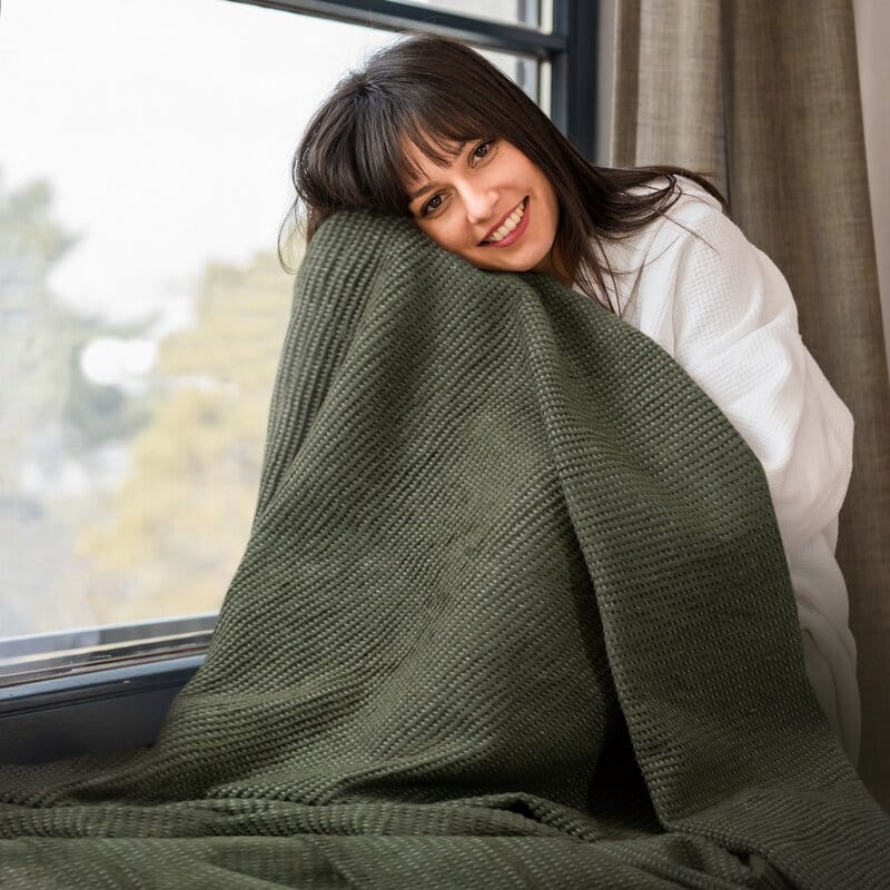 Koc bardzo miękki w dotyku, o strukturze waflowej szerokość: 70 cm, długość: 160 cm, kolor: beżowy, Gramatura: 345 GSM GSM, Skład: 50% bawełna, 30% poliester, 20% akryl
