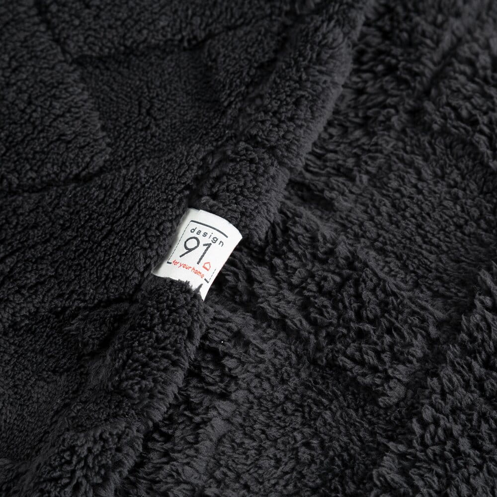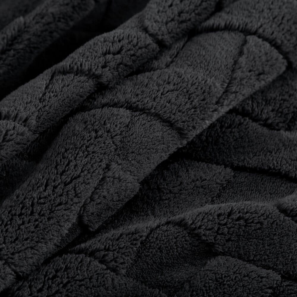 Klasyczny koc z przyjemnego w dotyku włókna w technologii mikroflano. Jednobarwna, puszysta faktura ozdobiona jest minimalistycznym tłoczeniem w formie jodełki. szerokość: 70 cm, długość: 160 cm, kolor: czarny, Gramatura: 340 GSM, Skład: 100% poliester