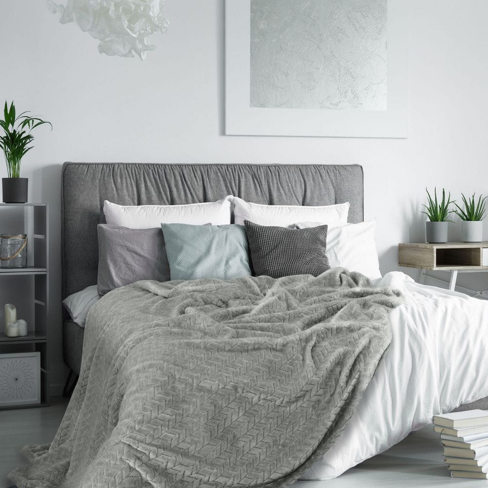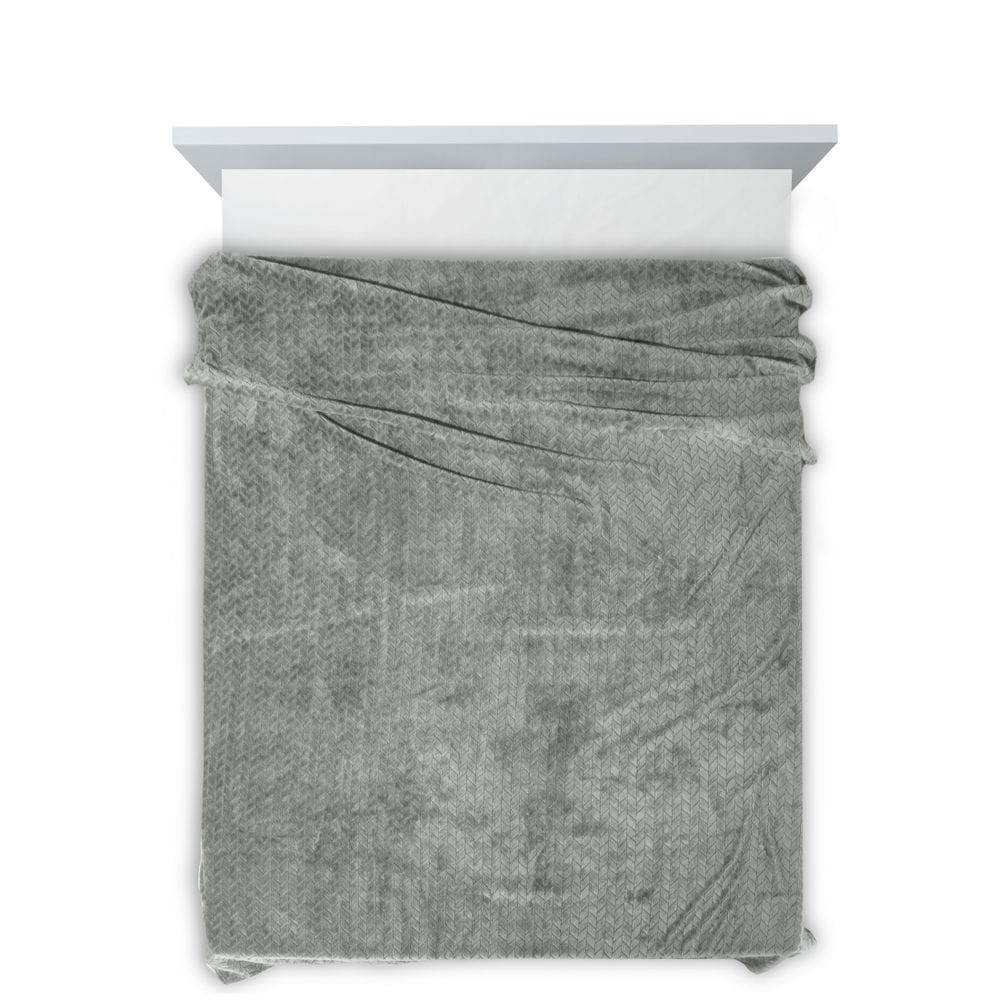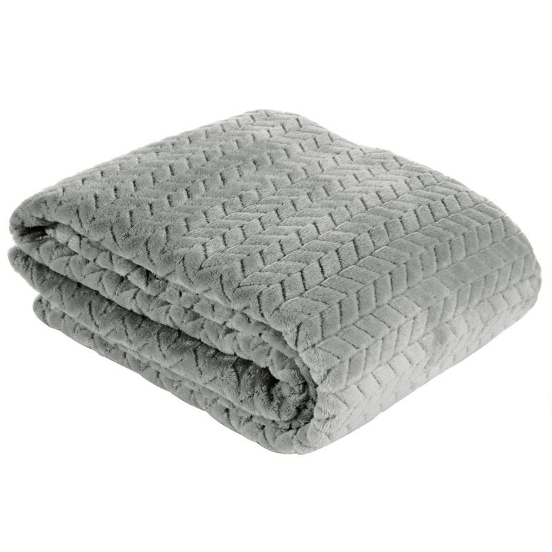 Klasyczny koc z przyjemnego w dotyku włókna w technologii mikroflano. Jednobarwna, puszysta faktura ozdobiona jest minimalistycznym tłoczeniem w formie jodełki. szerokość: 170 cm, długość: 210 cm, kolor: stalowy, Gramatura: 250GSM GSM, Skład: 100% poliester