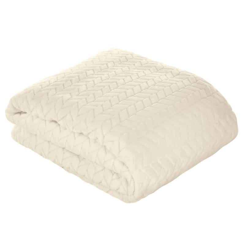 Klasyczny koc z przyjemnego w dotyku włókna w technologii mikroflano. Jednobarwna, puszysta faktura ozdobiona jest minimalistycznym tłoczeniem w formie jodełki. , szerokość: 220 cm, długość: 200 cm, kolor BEŻOWY. Gramatura: 250 GSM. Skład: 100% poliester