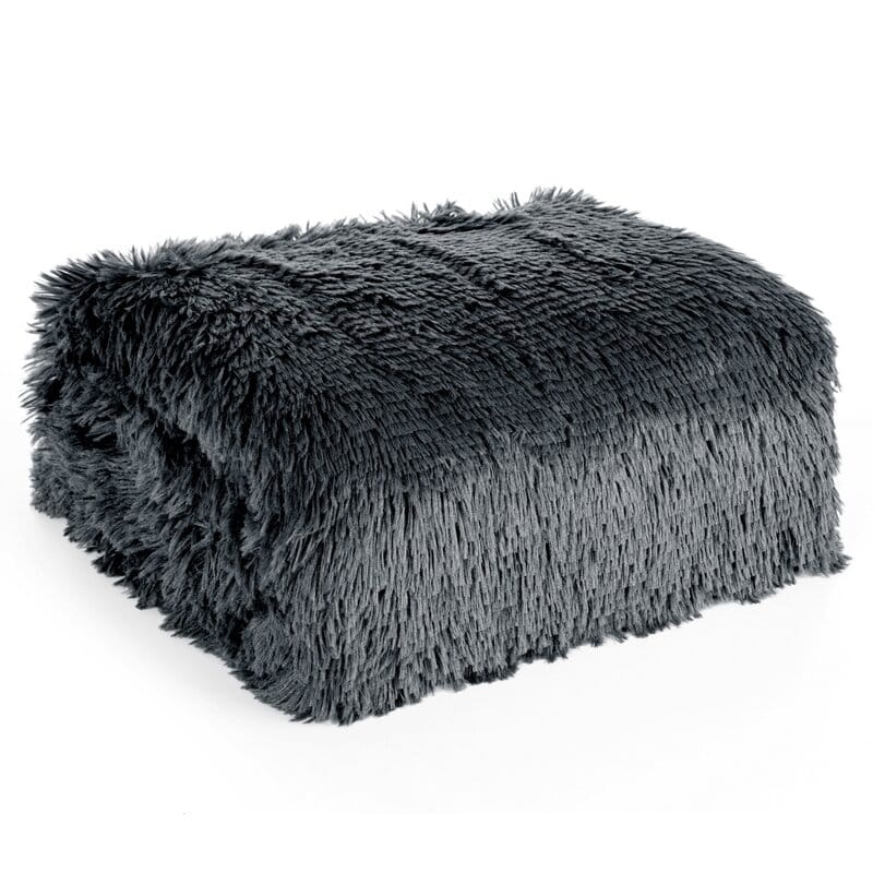 Ciepły i miły w dotyku koc o strukturze futra szerokość: 150 cm, długość: 200 cm, kolor: stalowy, Gramatura: 240 GSM GSM, Skład: 100% poliester
