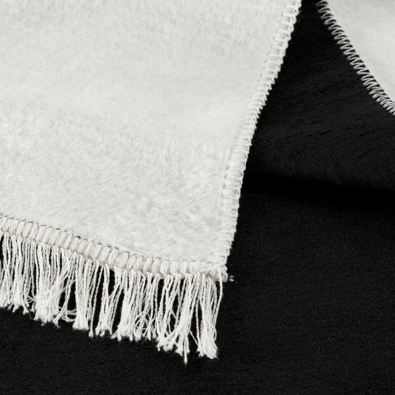 Koc akrylowo bawełniany dwukolorowy z frędzlami szerokość: 150 cm, długość: 200 cm, kolor: biały, Gramatura: 450 GSM GSM, Skład: 58% bawełna, 32% akryl, 10% poliester
