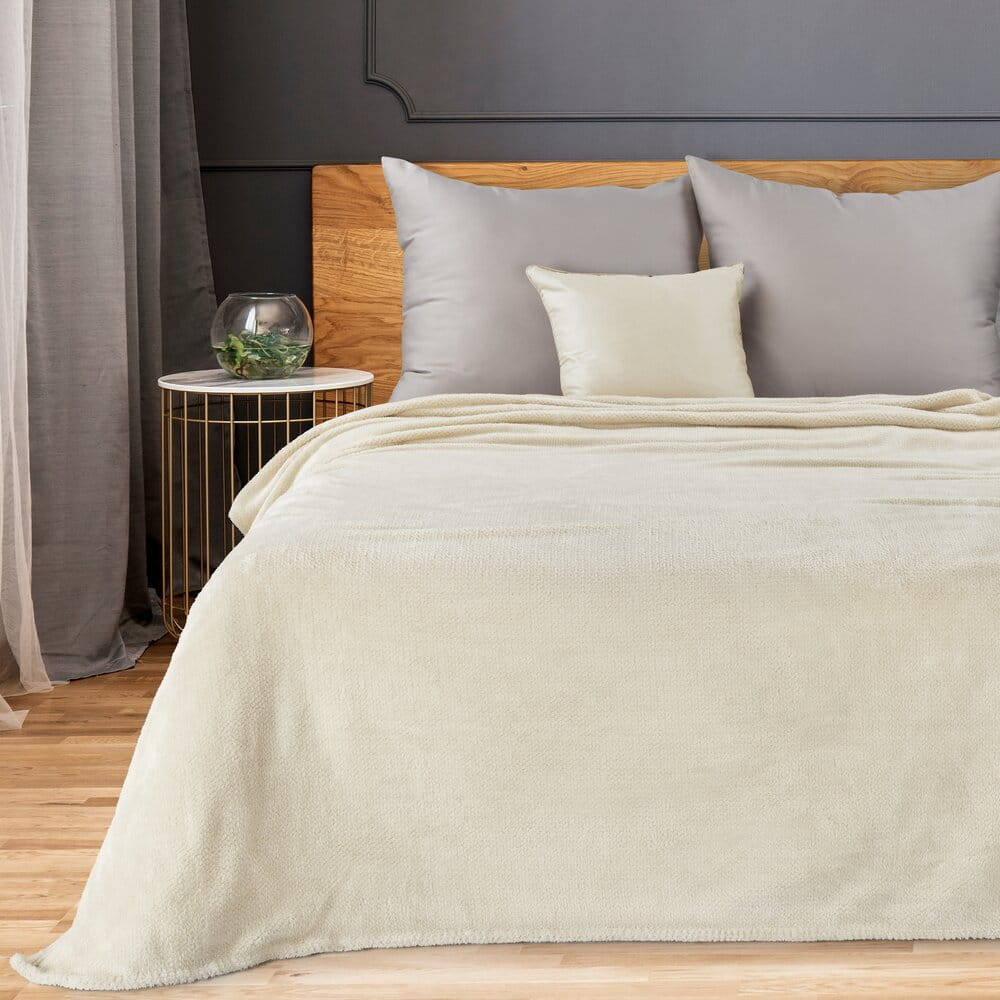 Koc flano bardzo miękki w dotyku szerokość: 150 cm, długość: 200 cm, kolor: beżowy, Gramatura: 250 GSM GSM, Skład: 100% poliester