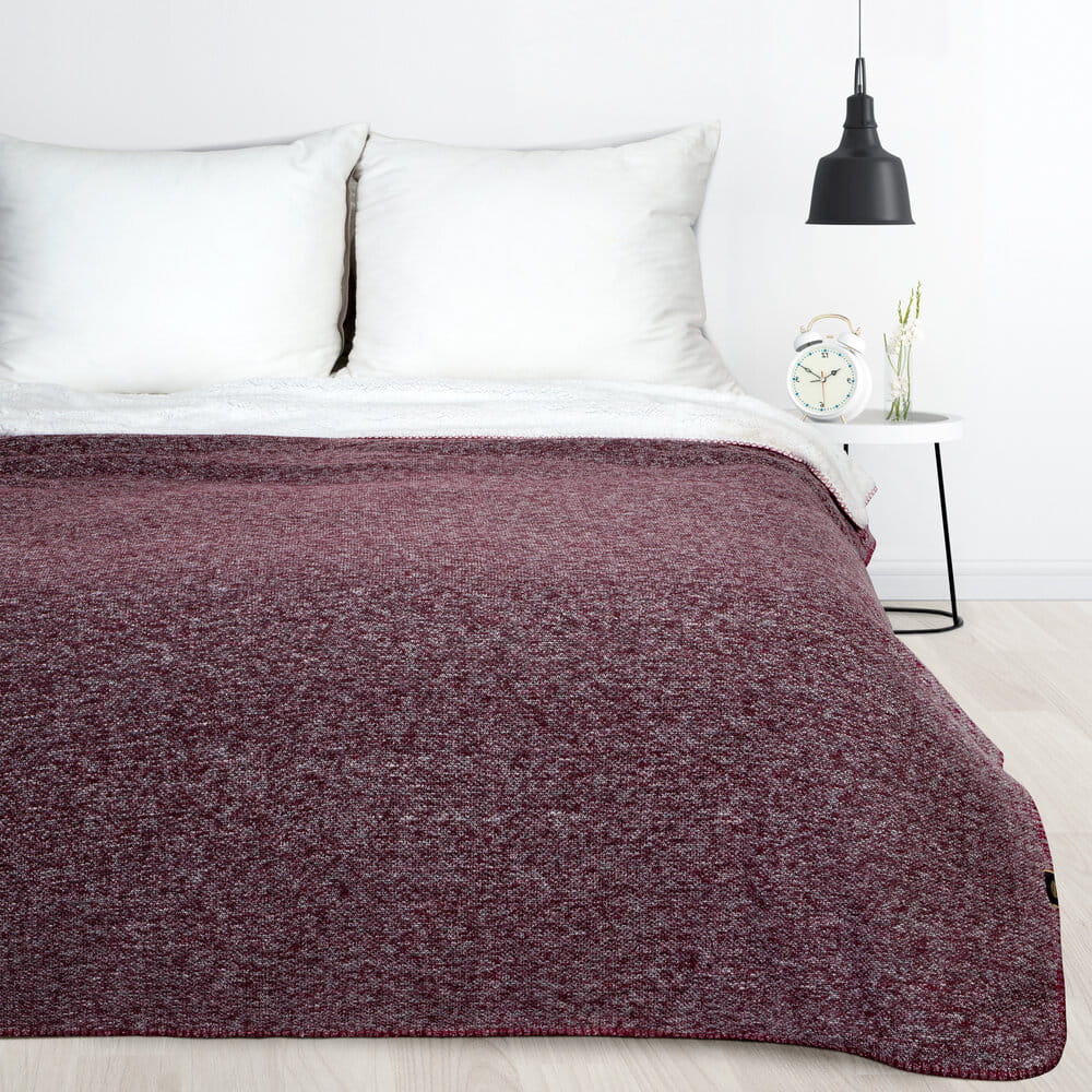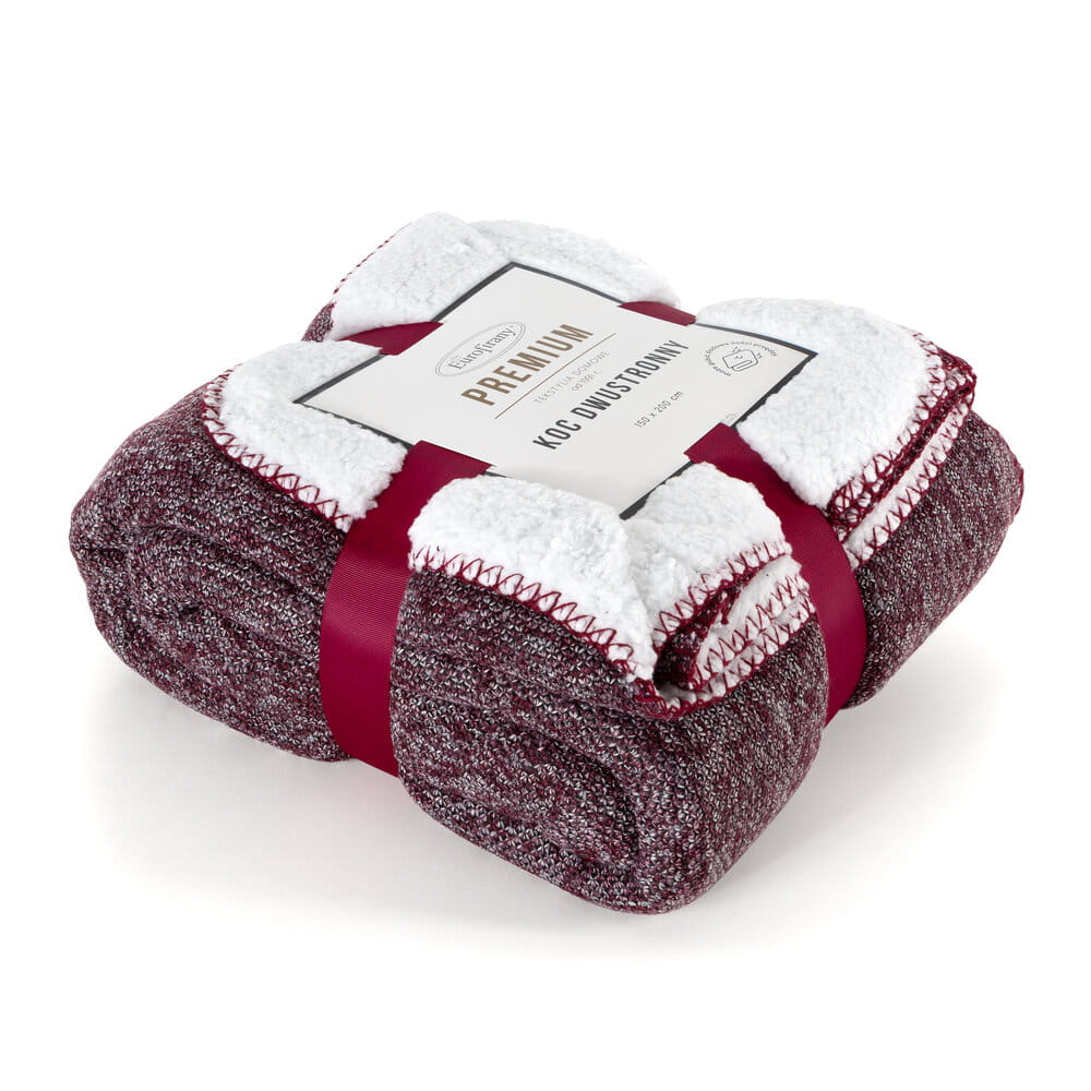 Niezwykle miękki w dotyku koc dwustronny szerokość: 150 cm, długość: 200 cm, kolor: bordowy, Gramatura: 300 GSM, Skład: 100% poliester