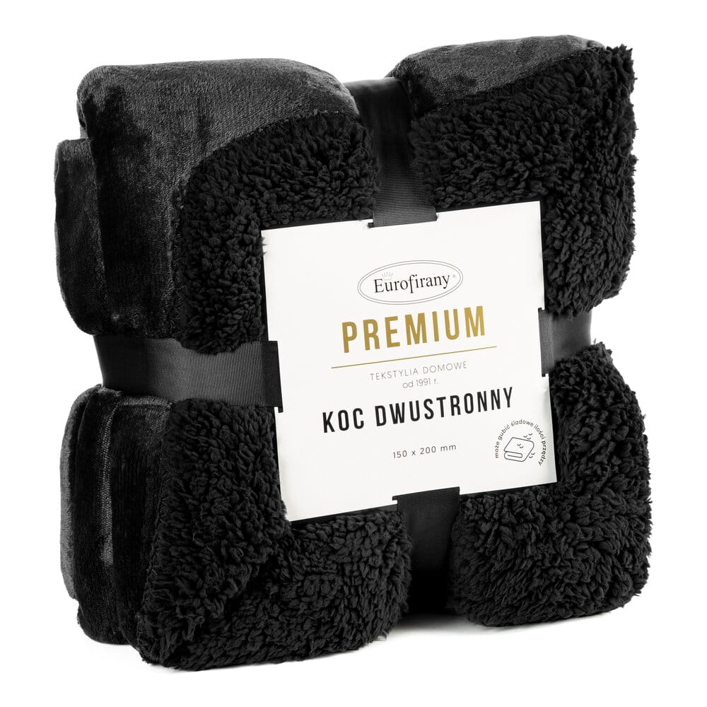 Miękki w dotyku koc jednokolorowy imitujący buklę szerokość: 150 cm, długość: 200 cm, kolor: czarny, Gramatura: 170+170 GSM, Skład: 100% poliester