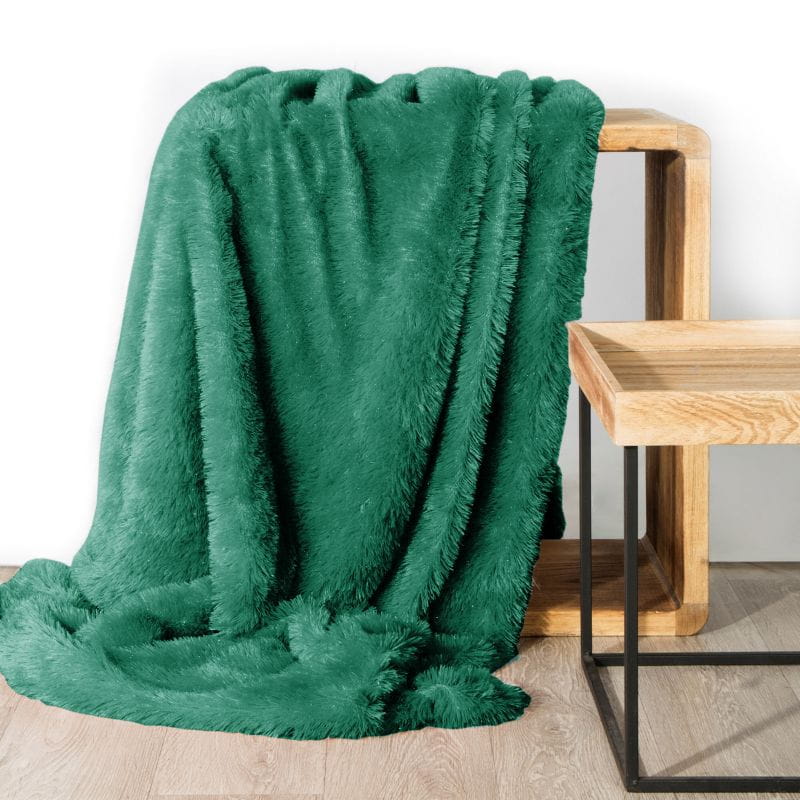 Ciepły i miły w dotyku koc o strukturze futra ze srebrną nicią , szerokość: 150 cm, długość: 200 cm, kolor CIEMNY ZIELONY. Gramatura: 240 GSM. Skład: 100% poliester