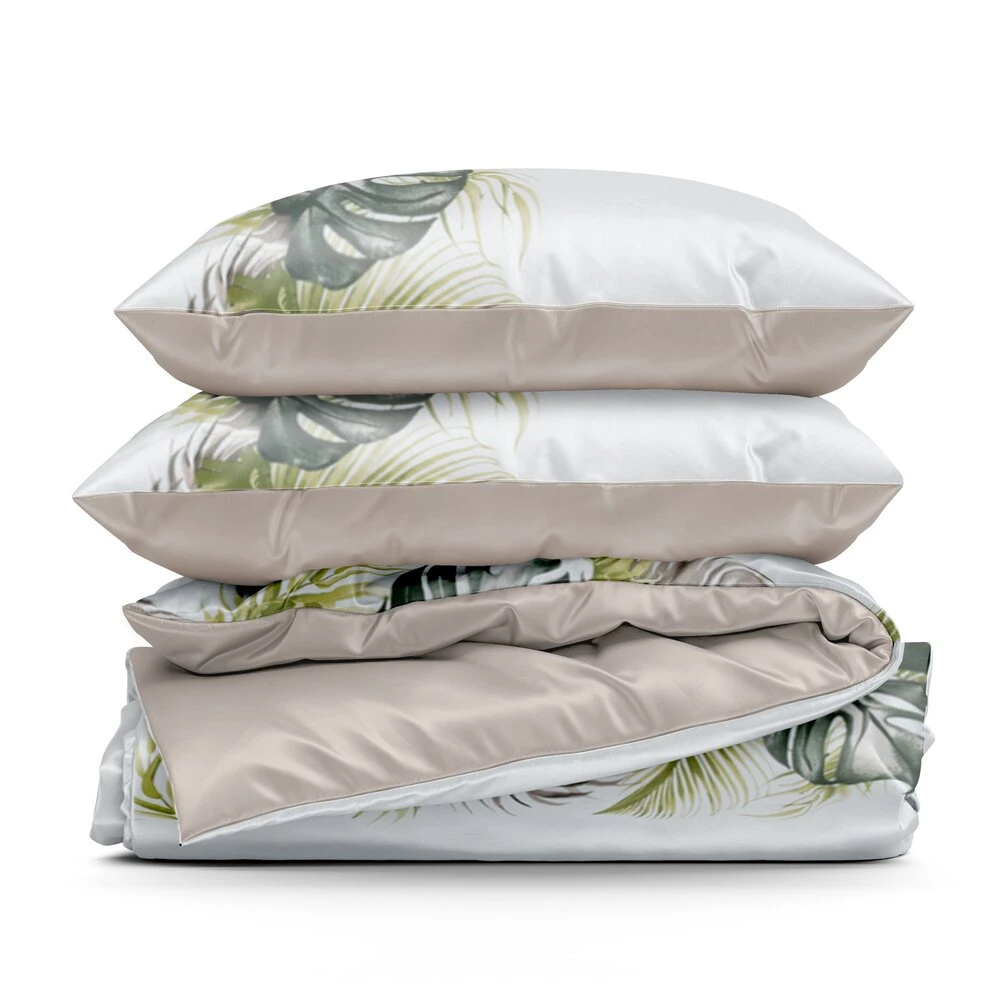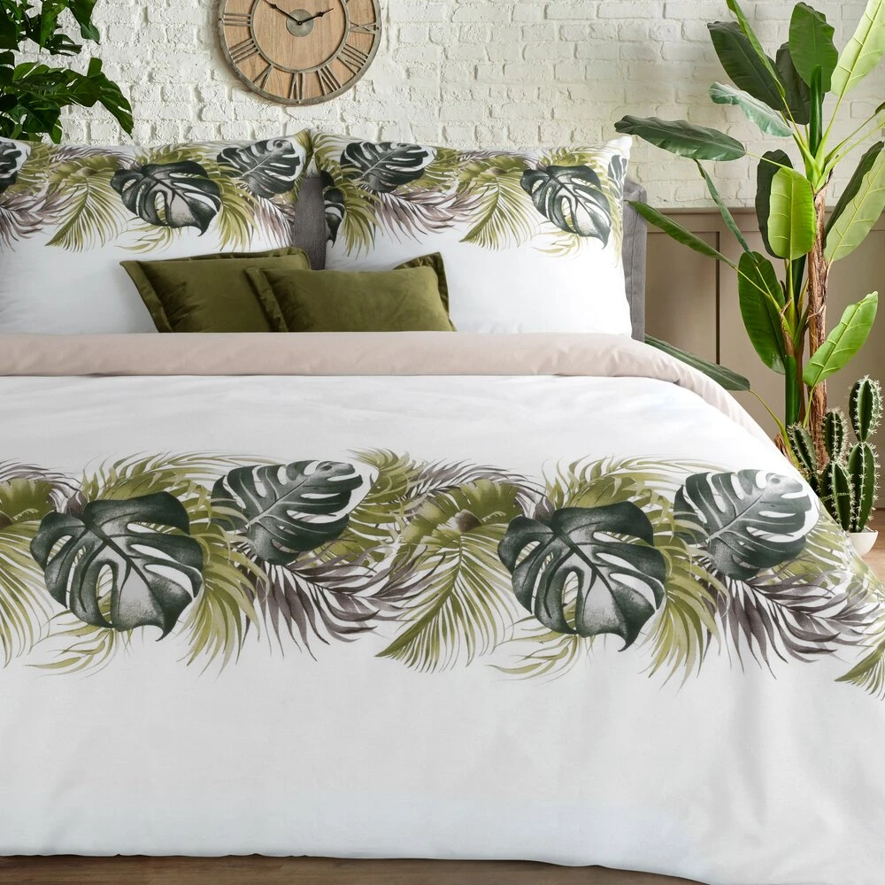 Komplet pościeli bawełnianej z nadrukiem szerokość: 220 cm, długość: 200 cm, kolor: biały, Gramatura: 105 GSM, Skład: 100% bawełna