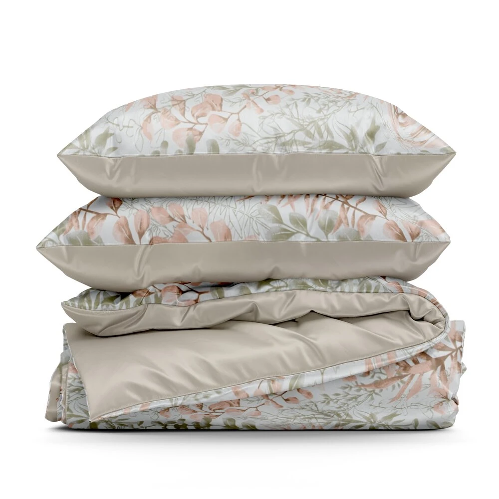 Komplet pościeli bawełnianej z nadrukiem szerokość: 140 cm, długość: 200 cm, kolor: pudrowy róż, Gramatura: 105 GSM, Skład: 100% bawełna