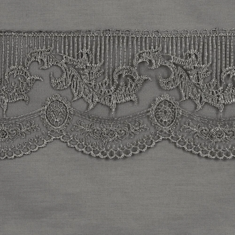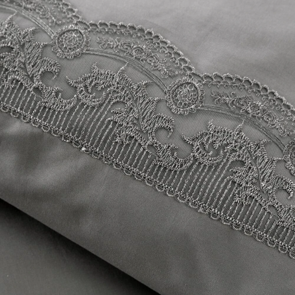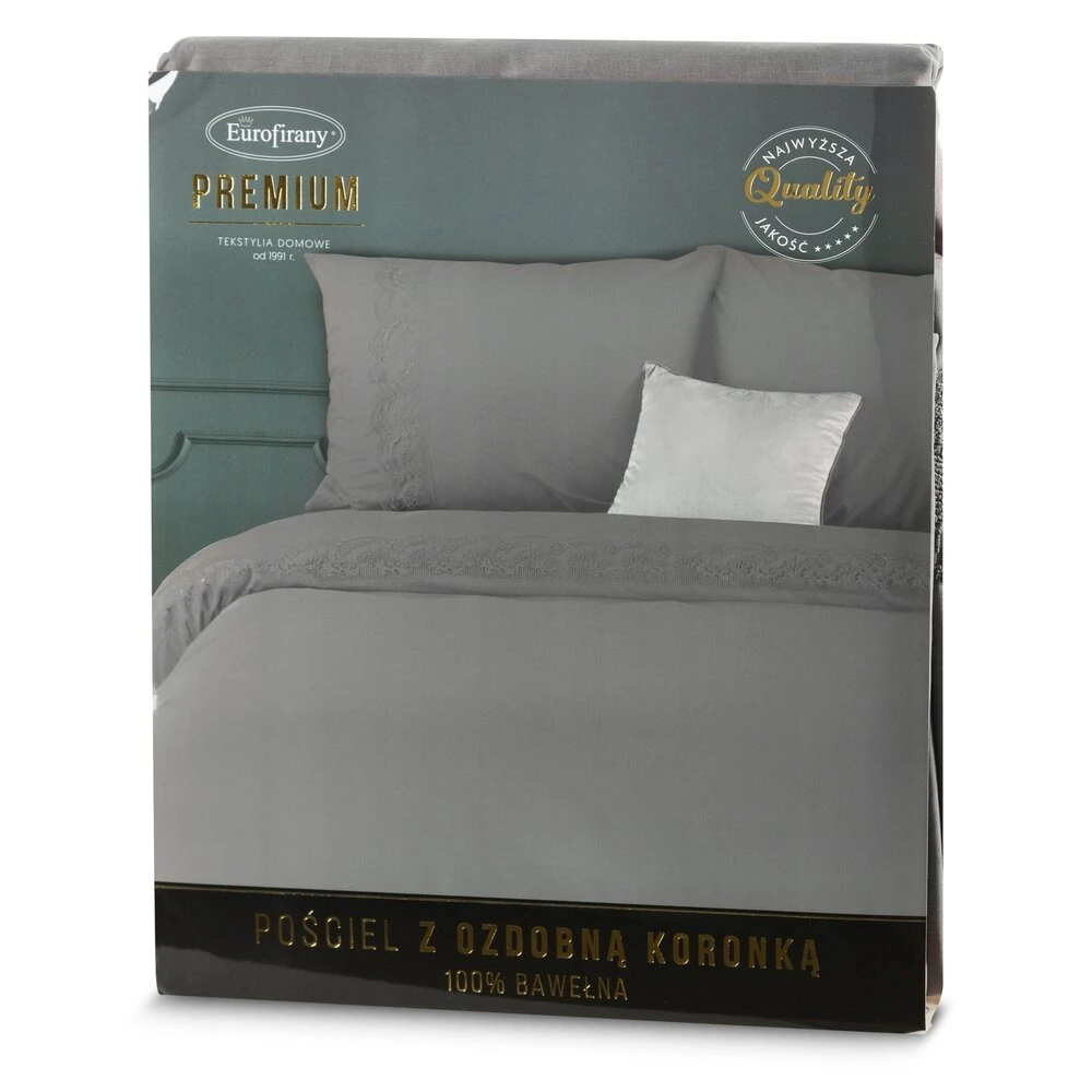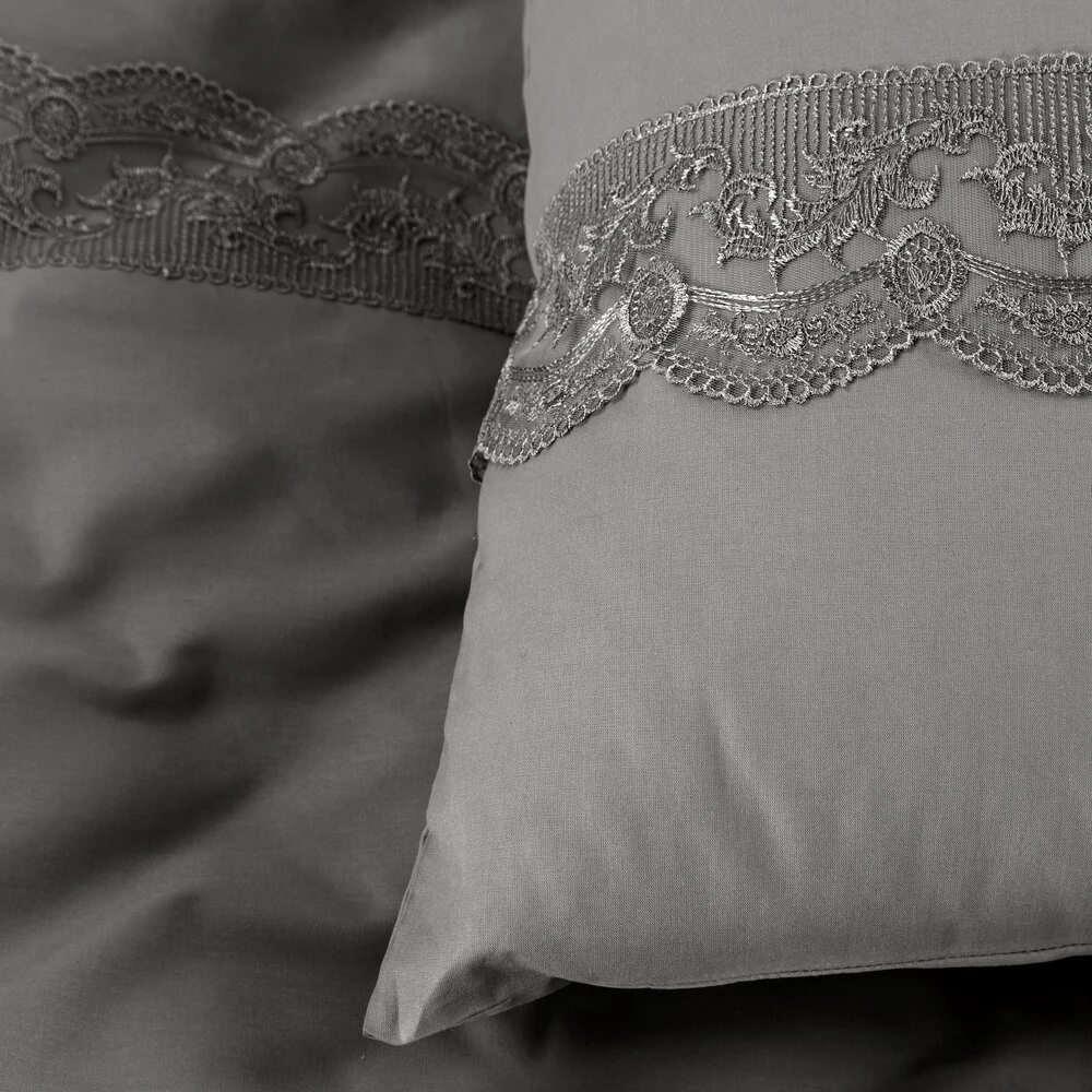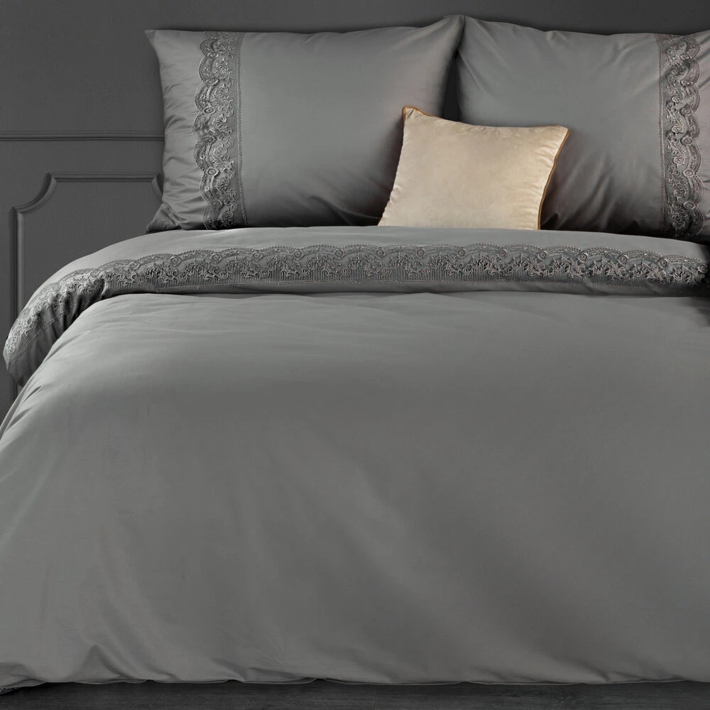Komplet pościeli bawełnianej zdobiony koronką szerokość: 160 cm, długość: 200 cm, kolor: stalowy, Gramatura: 115 GSM, Skład: 100% bawełna: część ozdobna: 100% poliester