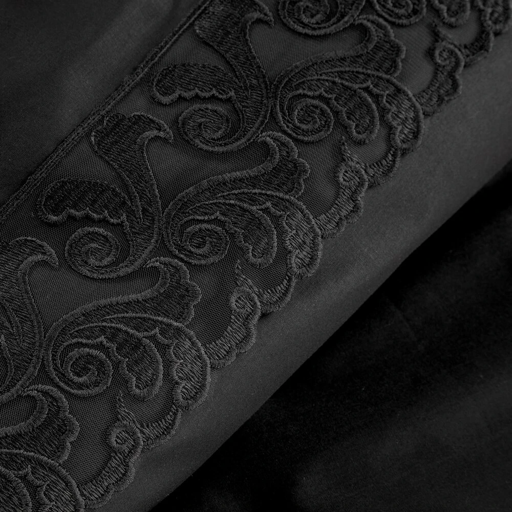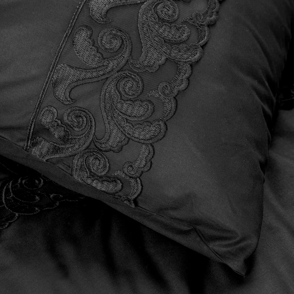 Komplet pościeli z satyny bawełnianej zdobiony koronką szerokość: 160 cm, długość: 200 cm, kolor: czarny, Gramatura: 115 GSM, Skład: 100% bawełna: część ozdobna: 100% poliester